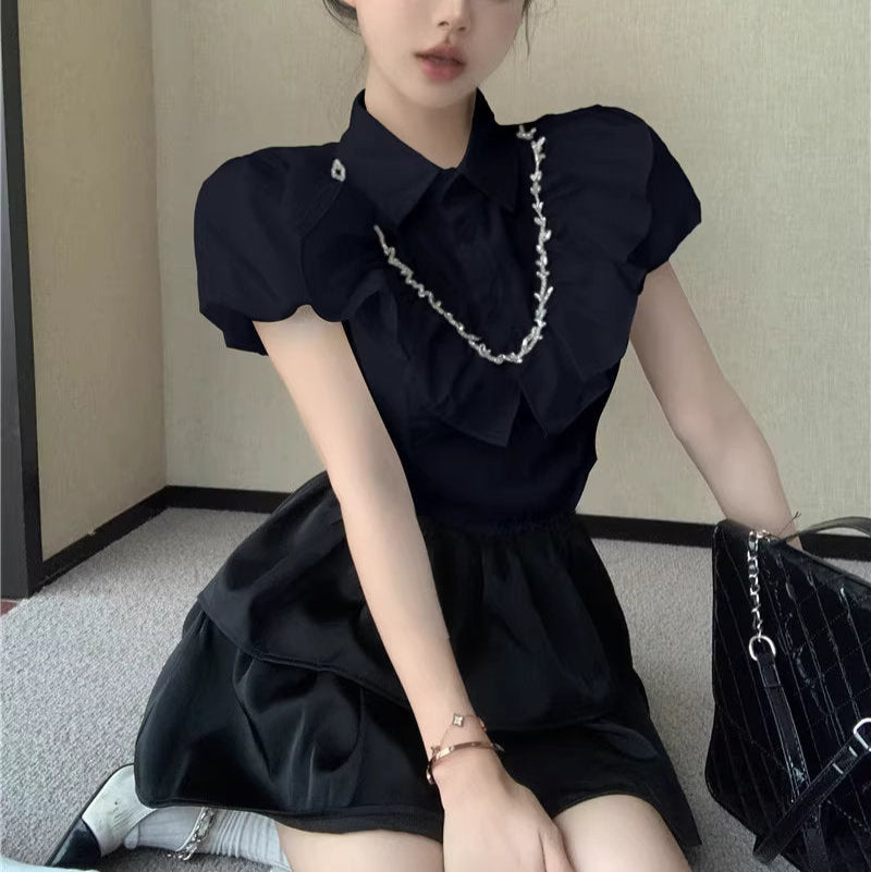 放課後の音楽室で秘密を打ち明けた日フリルブラウス_R0135