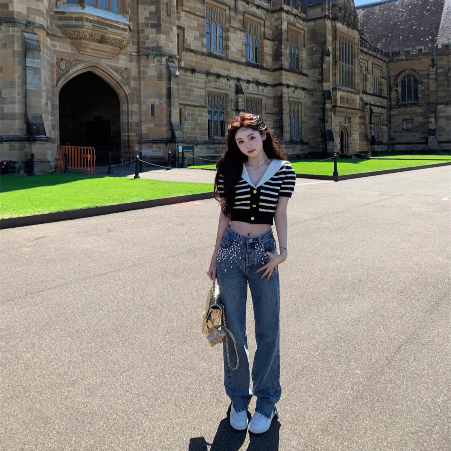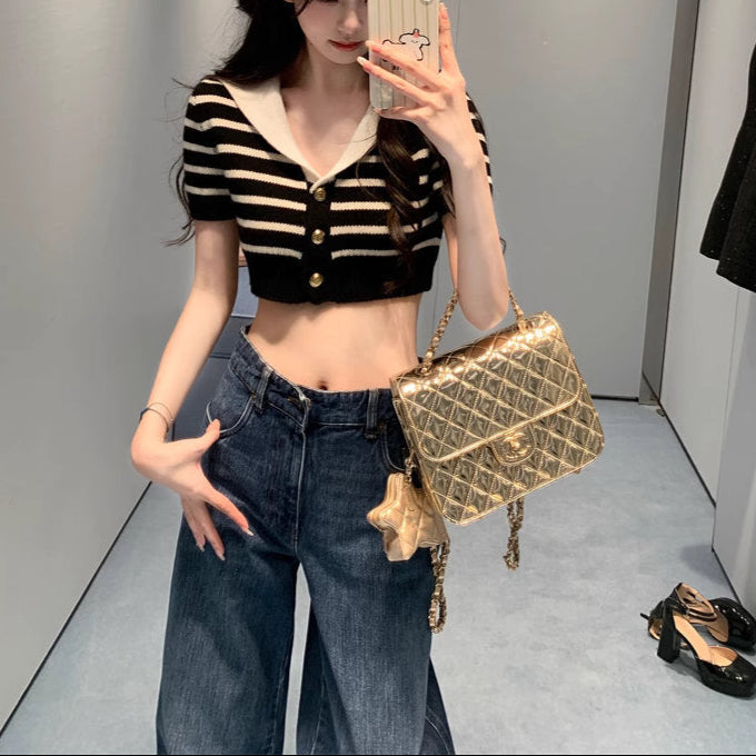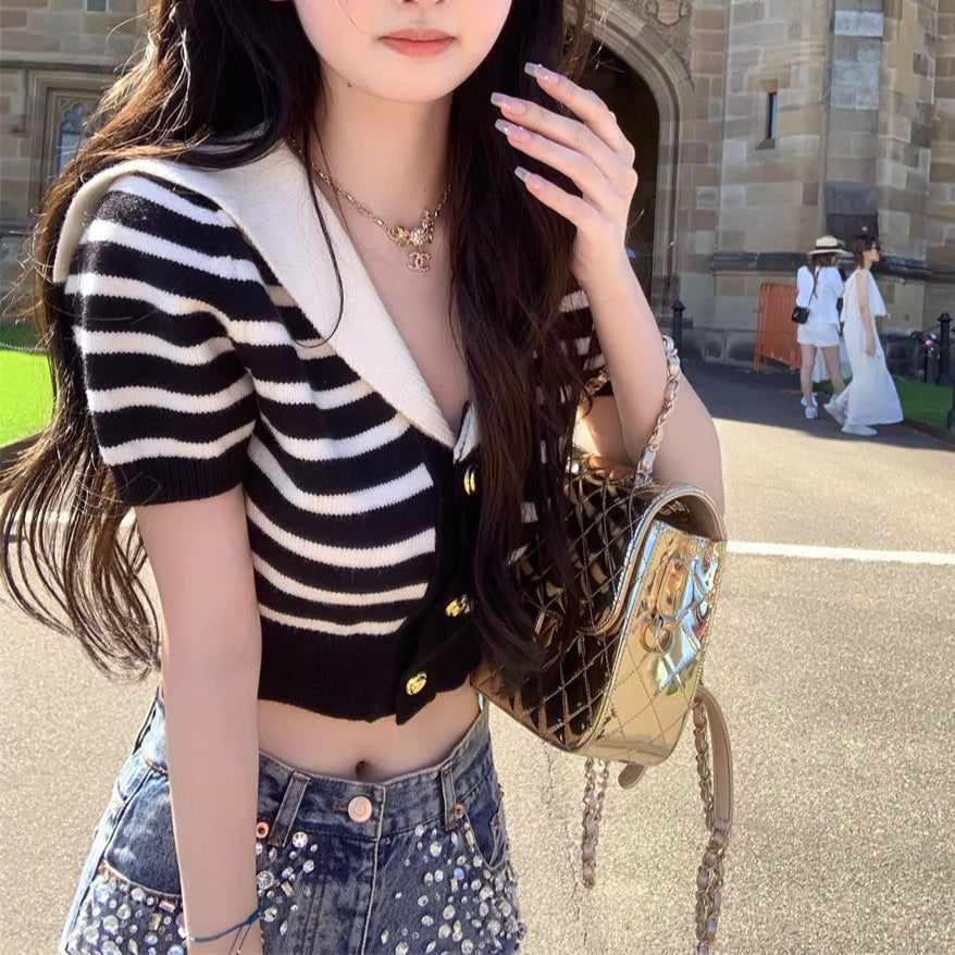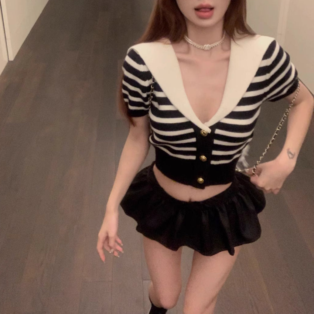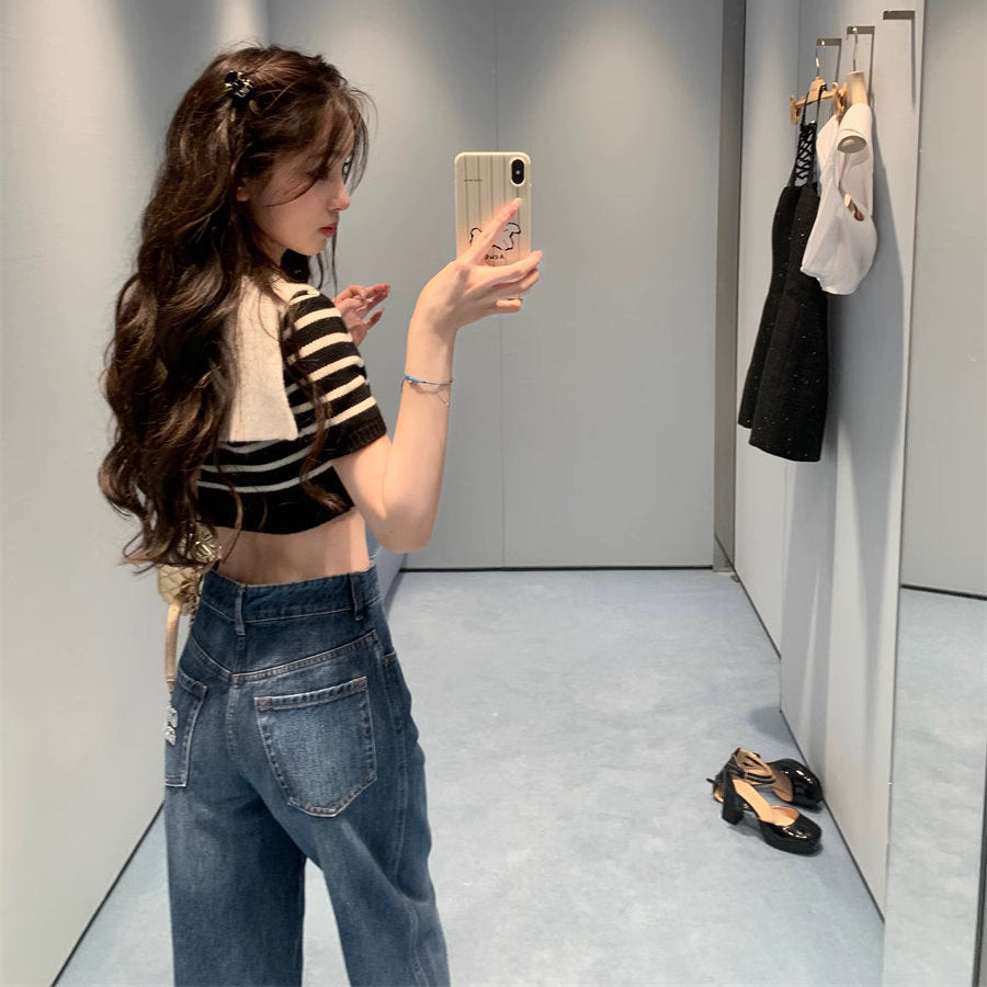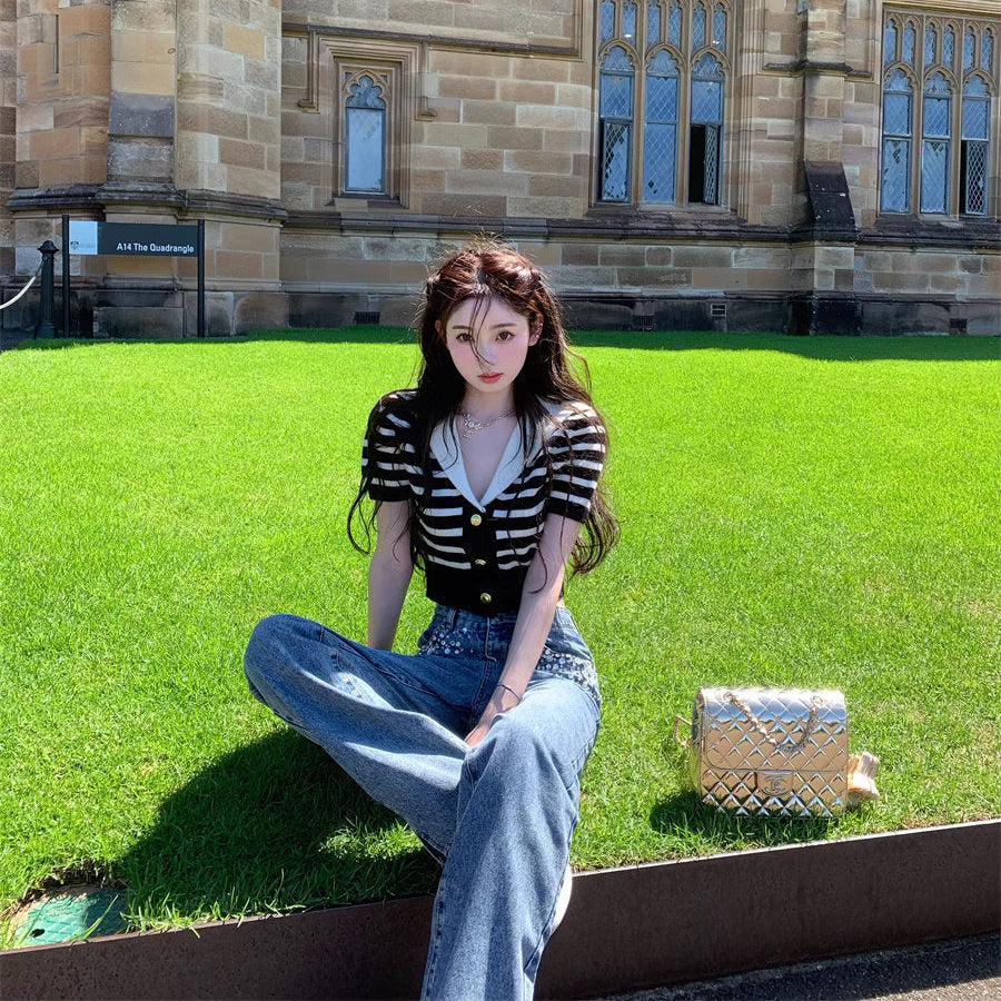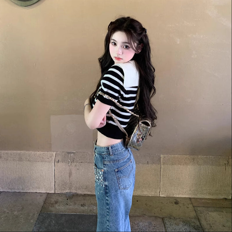 カフェで恋が動き出したボーダーニットトップス_R0140