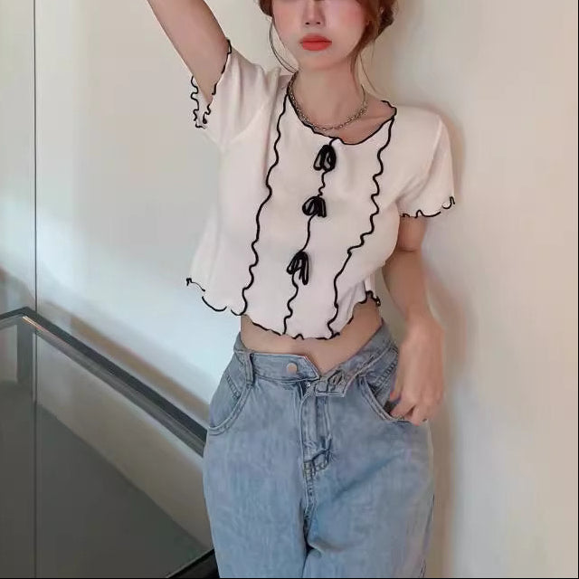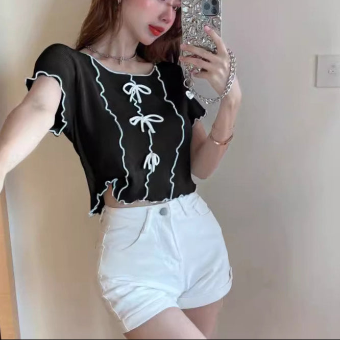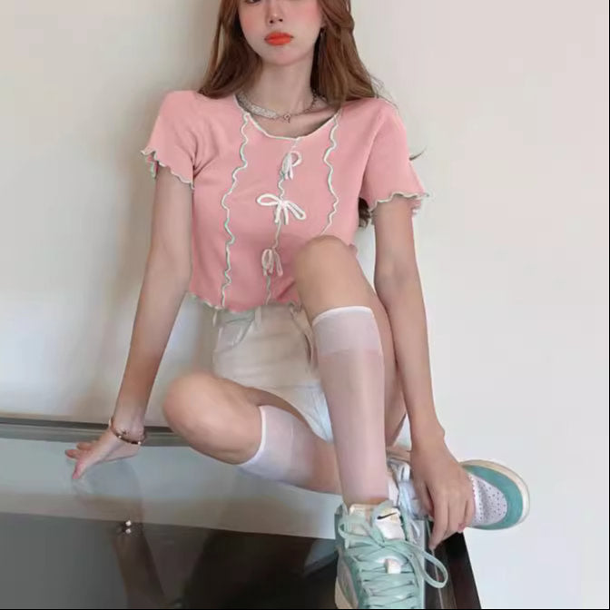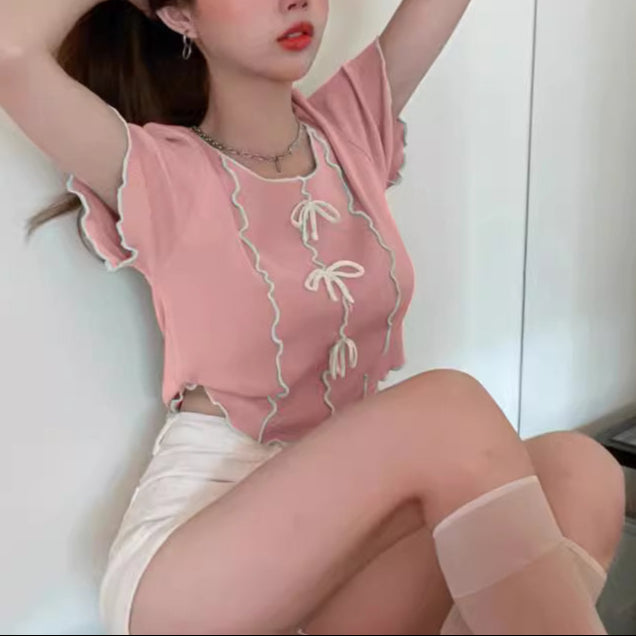 中央に並んだ小さなリボンがガーリーさをプラス♡