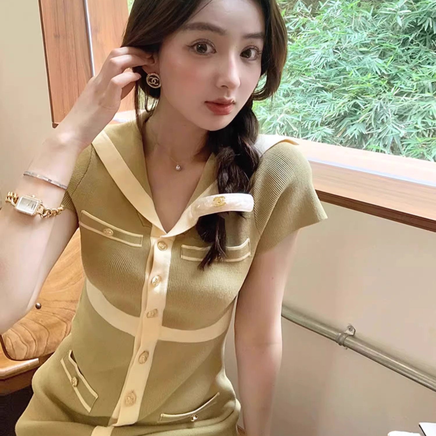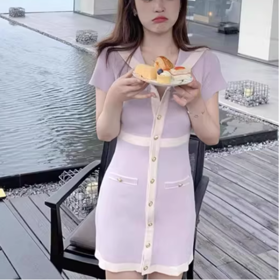ニット素材でほどよく身体にフィットし、女性らしいシルエットを引き立ててくれます♡