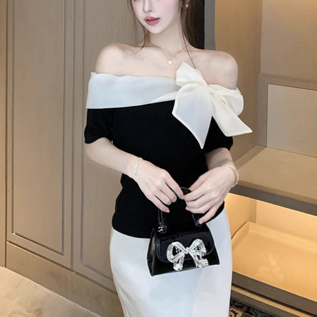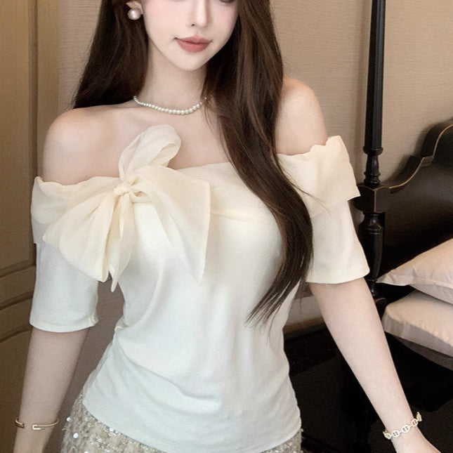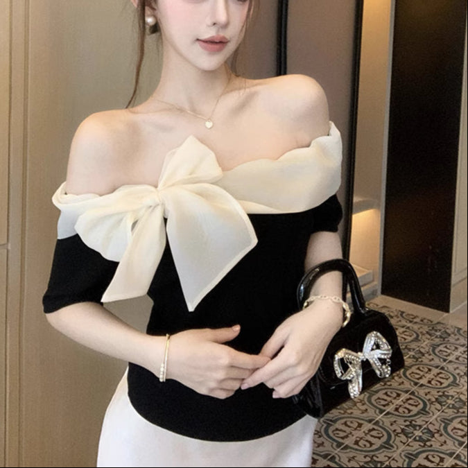 ロビーで運命を待つ、オフショルリボントップス_R0151