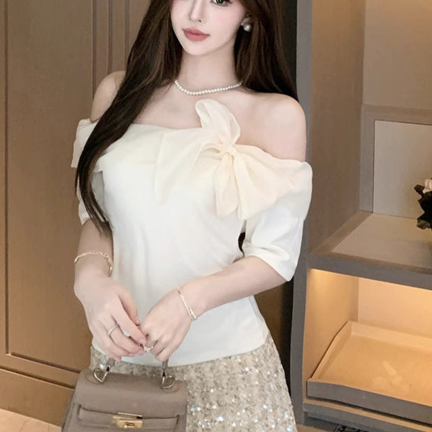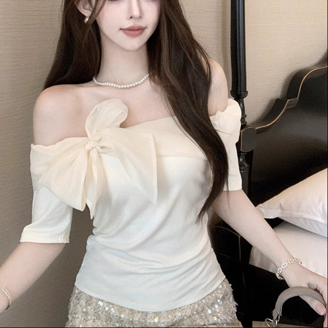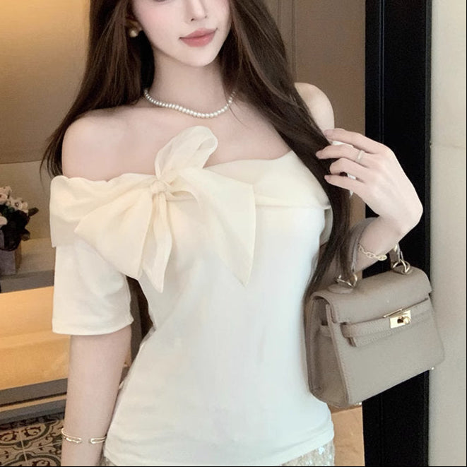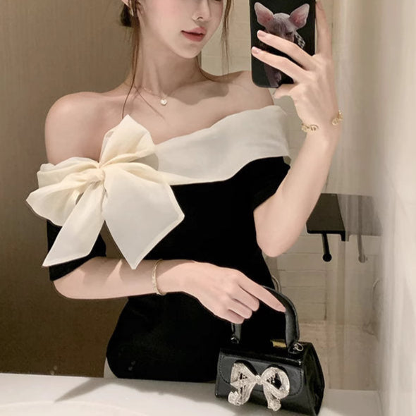 大きなホワイトリボンが印象的なエレガントトップス♡