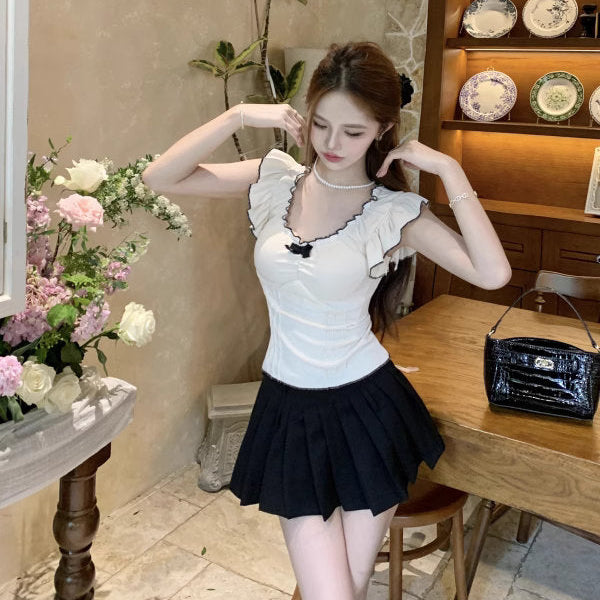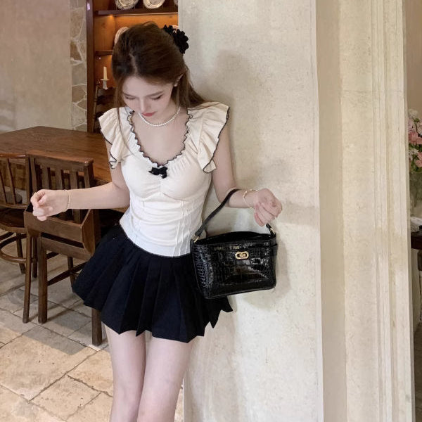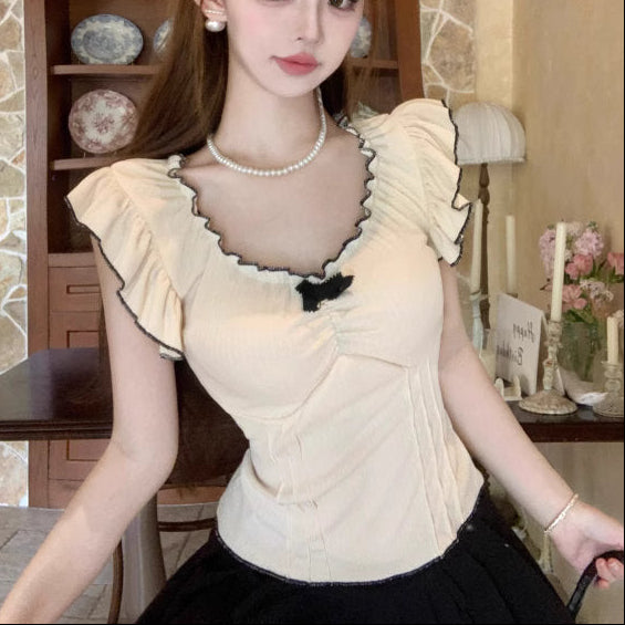 あの子の黒ふちフリルのフレンチトップス_R0164