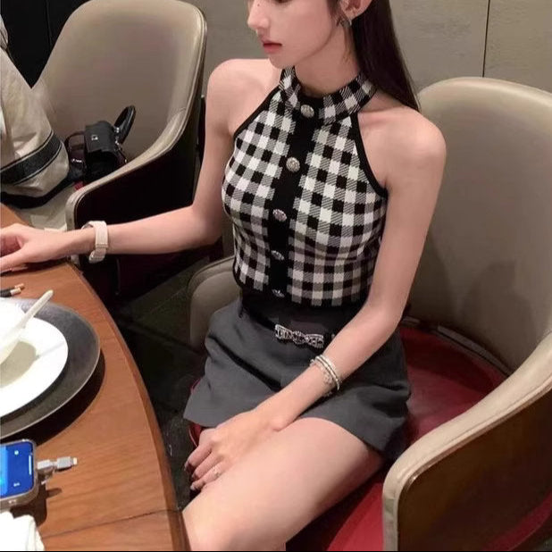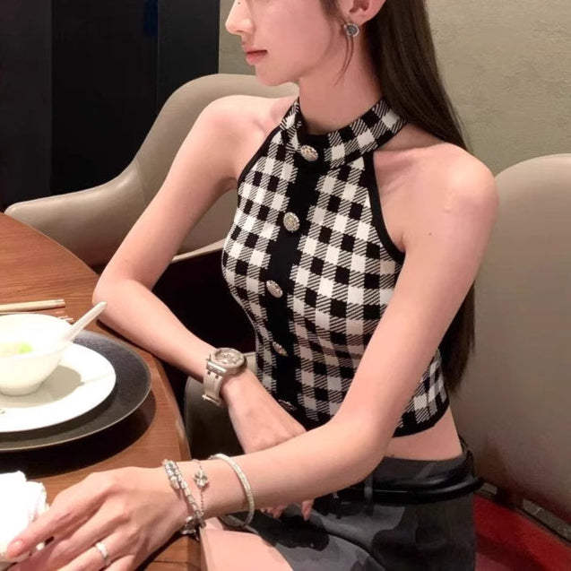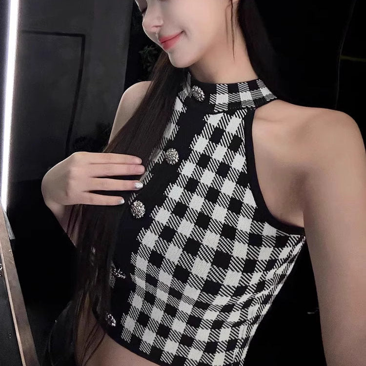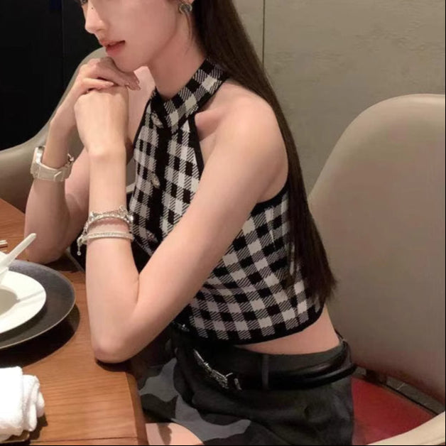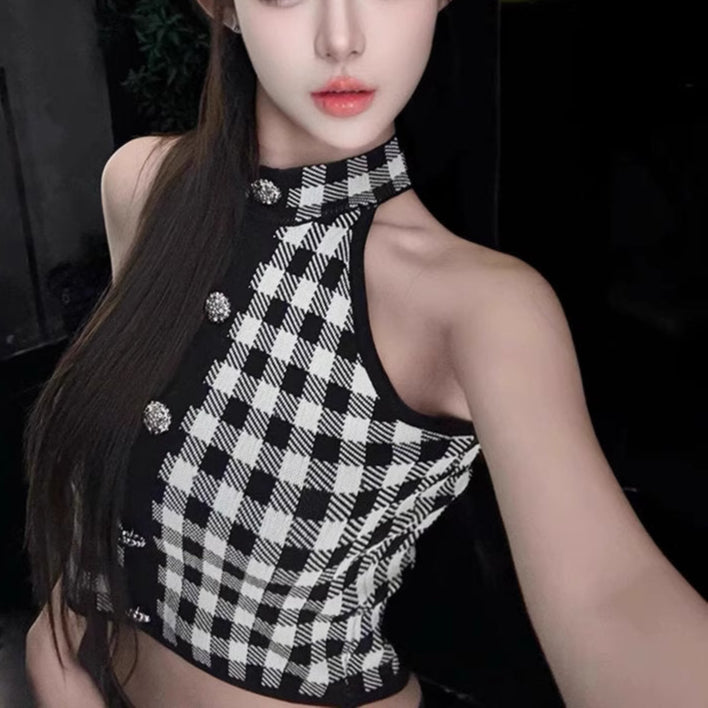 あの子だけが知ってる千鳥チェックノースリーブトップス_R0167