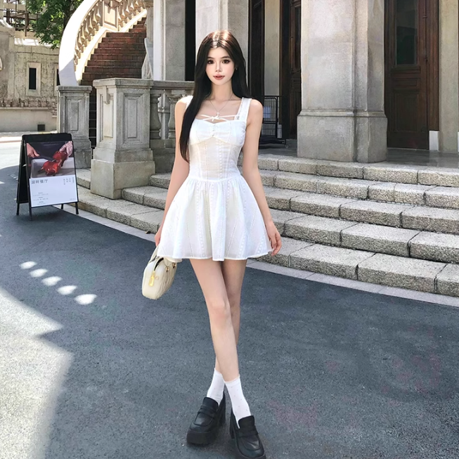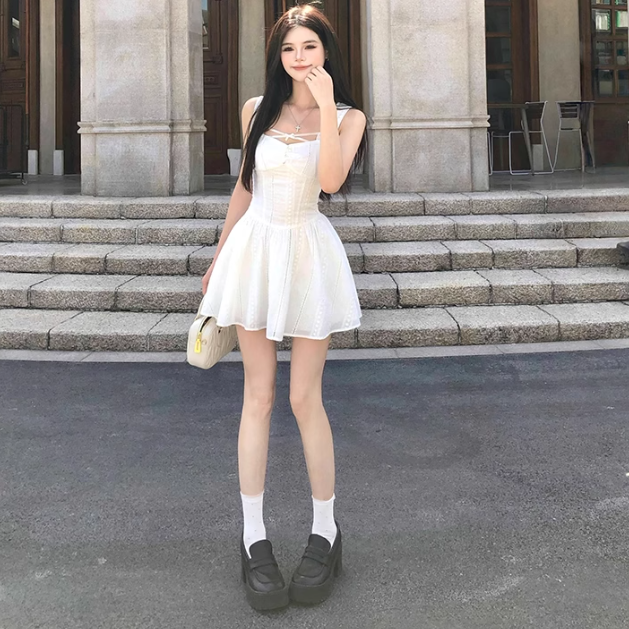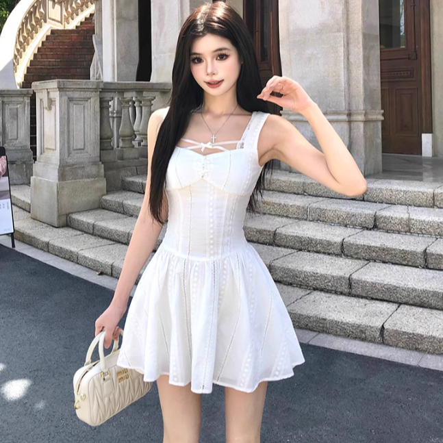 旅の途中で見つけた、ホワイトリボンワンピース_R0171
