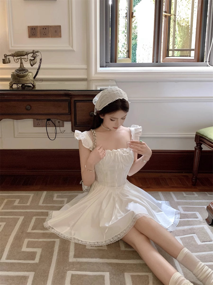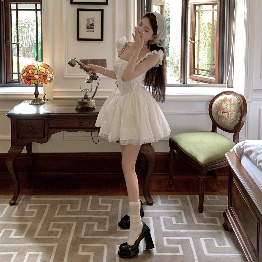 ガーデンハウスの窓辺で風をまとう、レースとフリルのバレリーナワンピース_R0185
