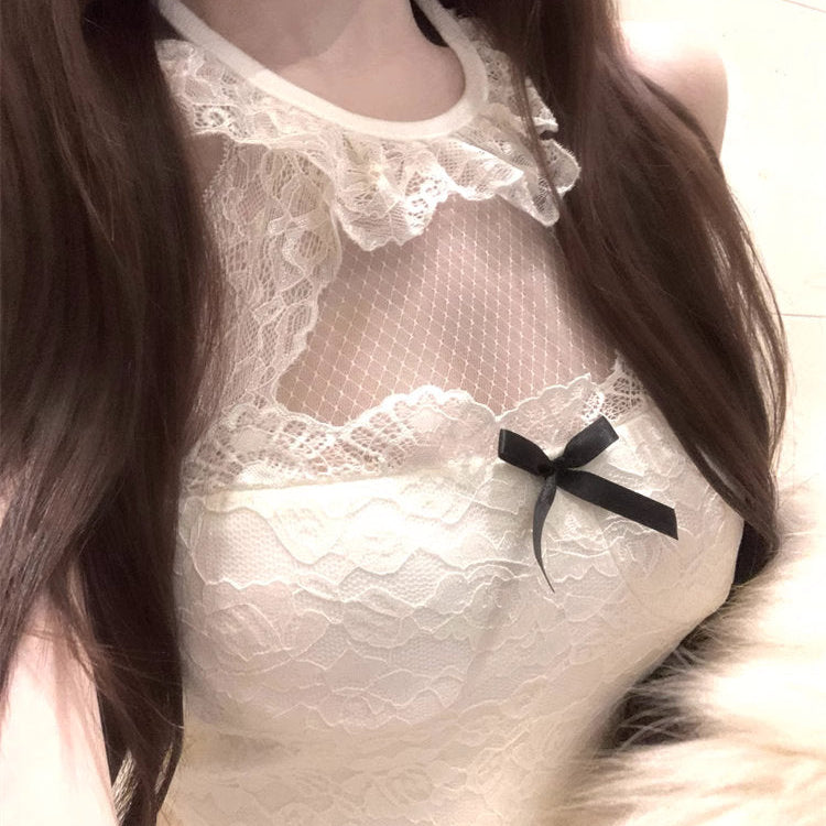 ほんのり透けるメッシュレースに、小さなリボンがアクセント♡