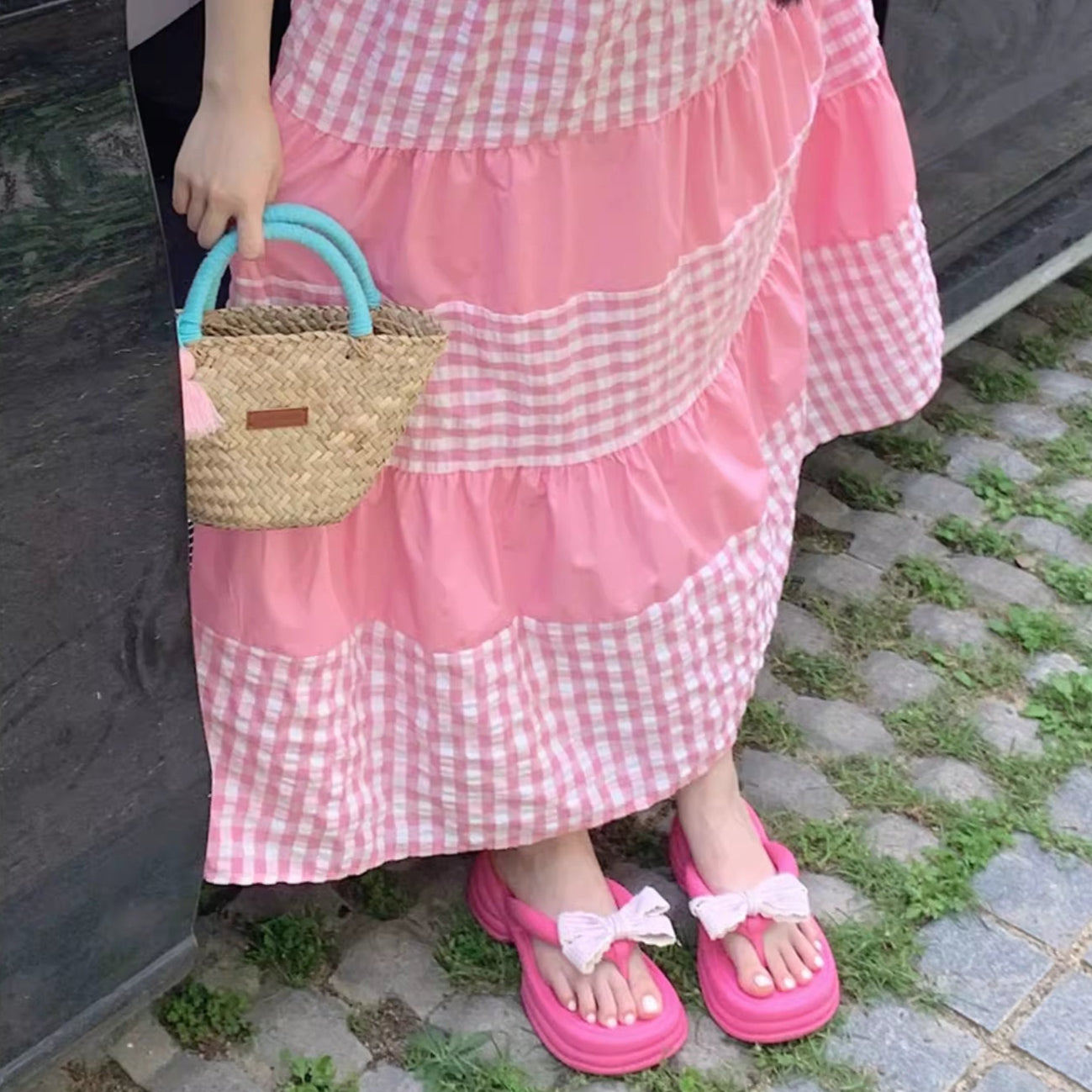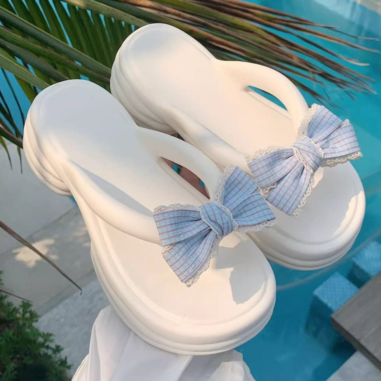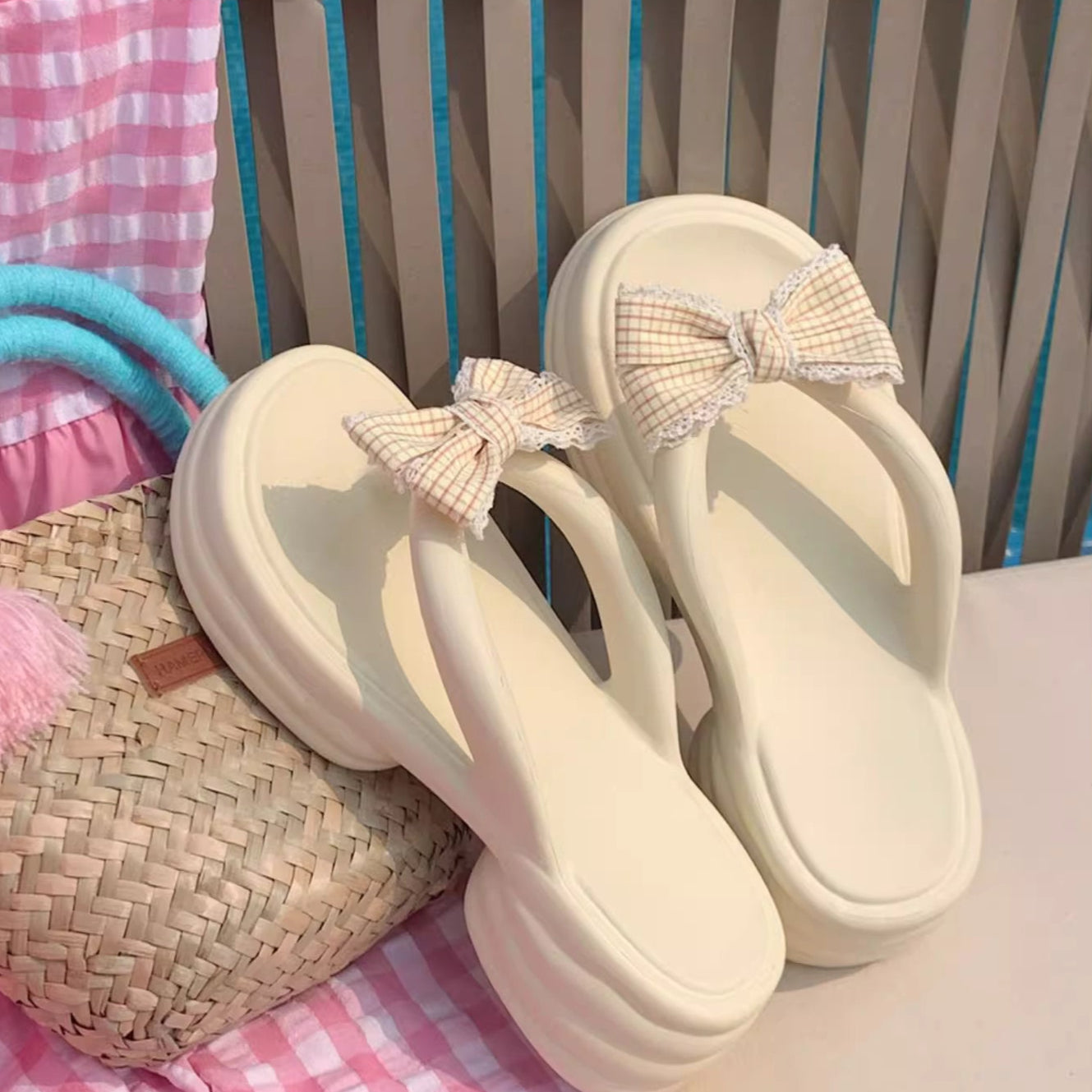 海辺のフルーツティーとギンガムリボン厚底サンダル_R0189