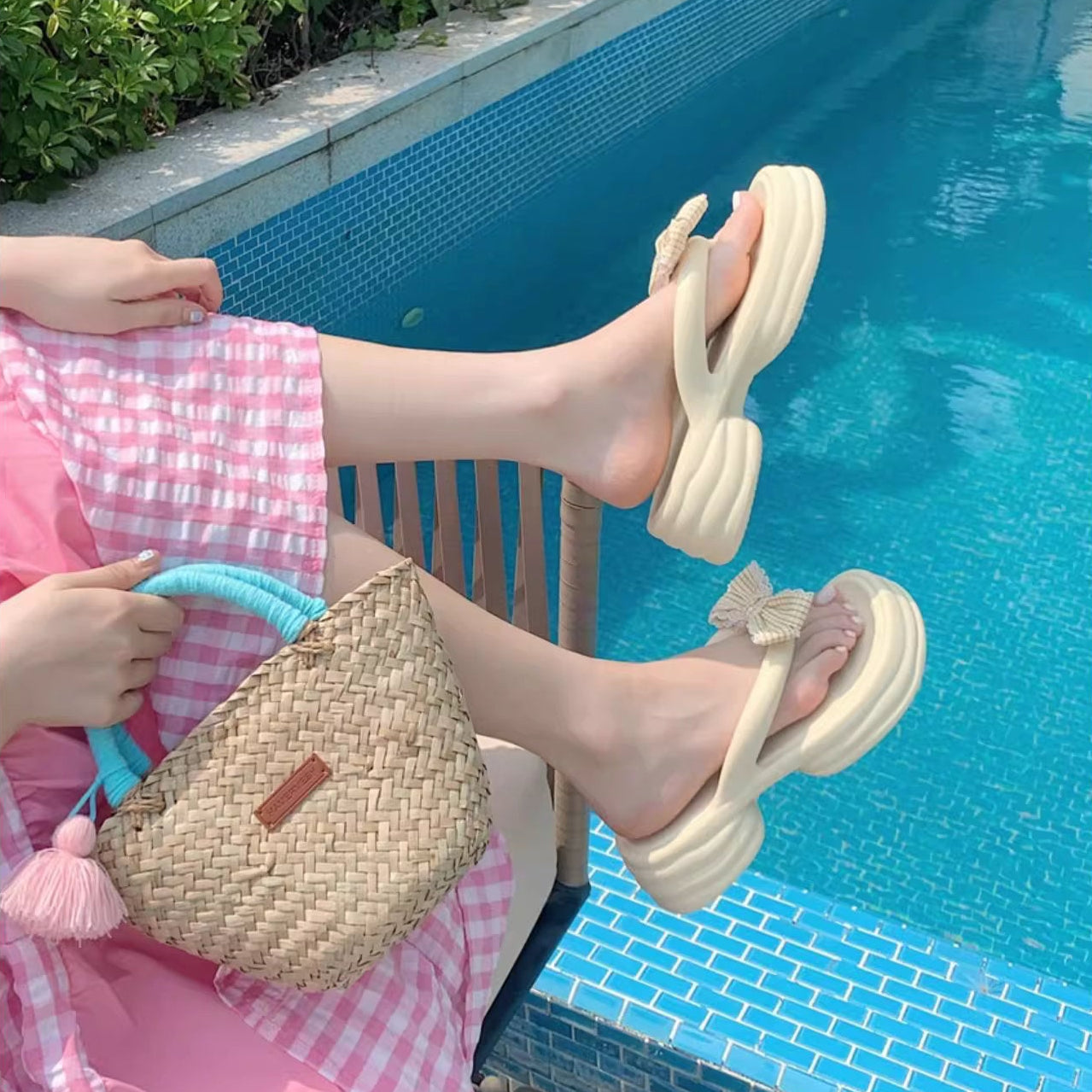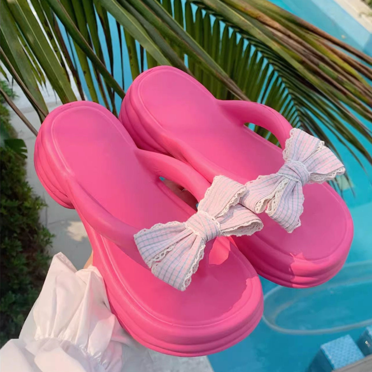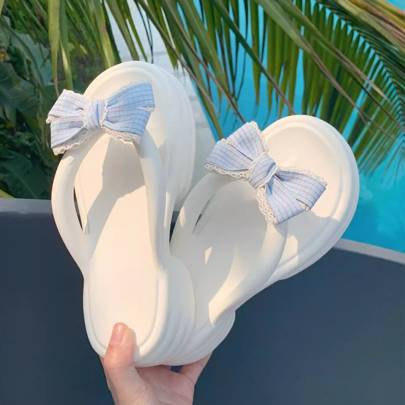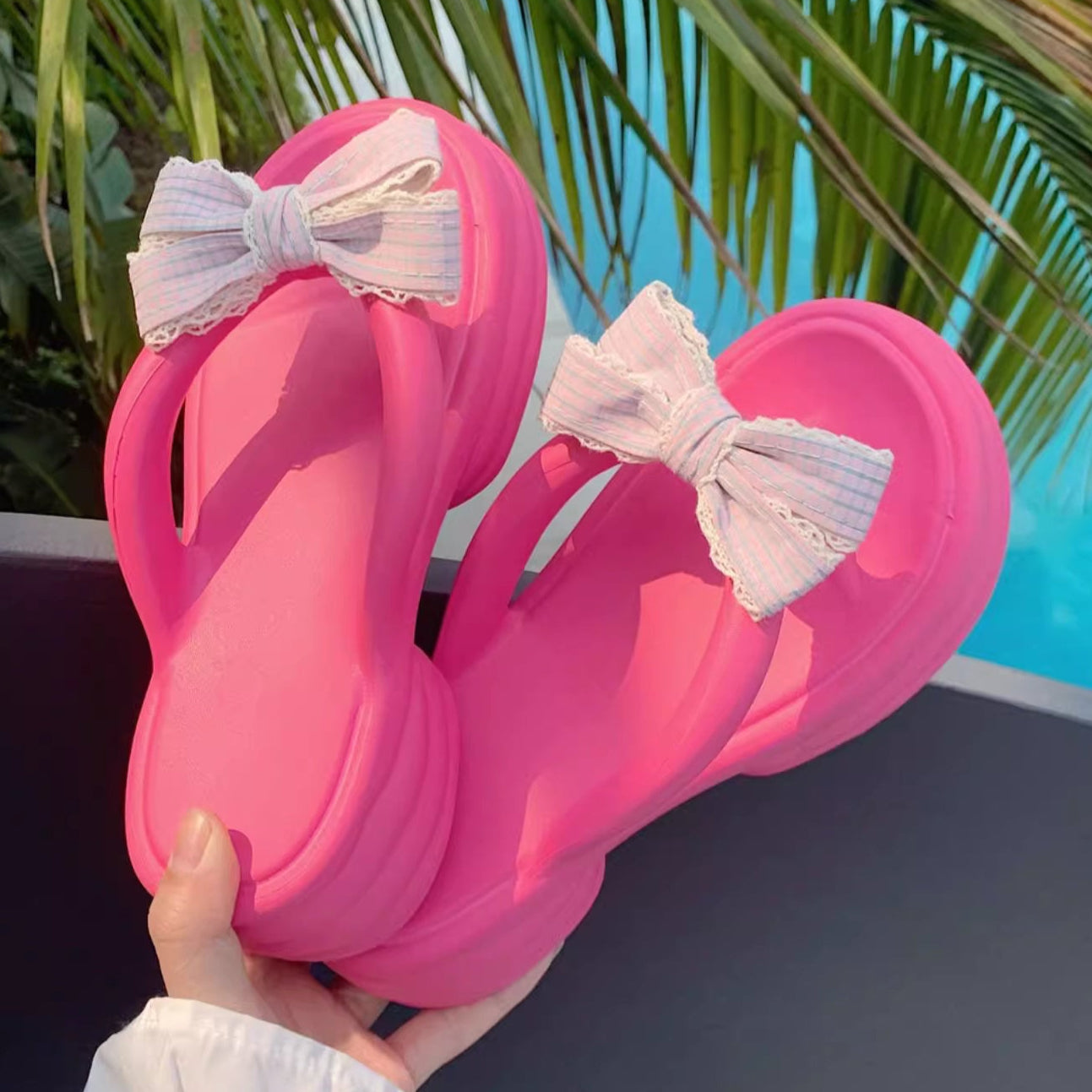 海辺のフルーツティーとギンガムリボン厚底サンダル_R0189