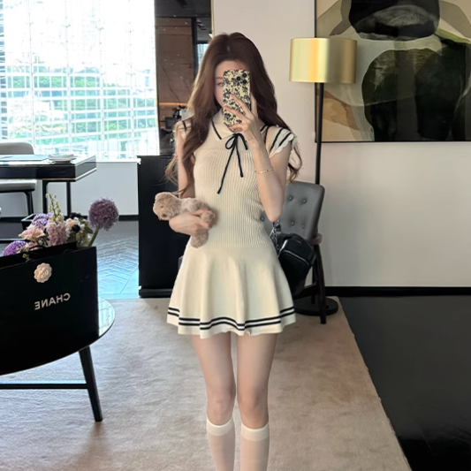 スカートの裾にあしらった2本ラインがなアクセントに♡