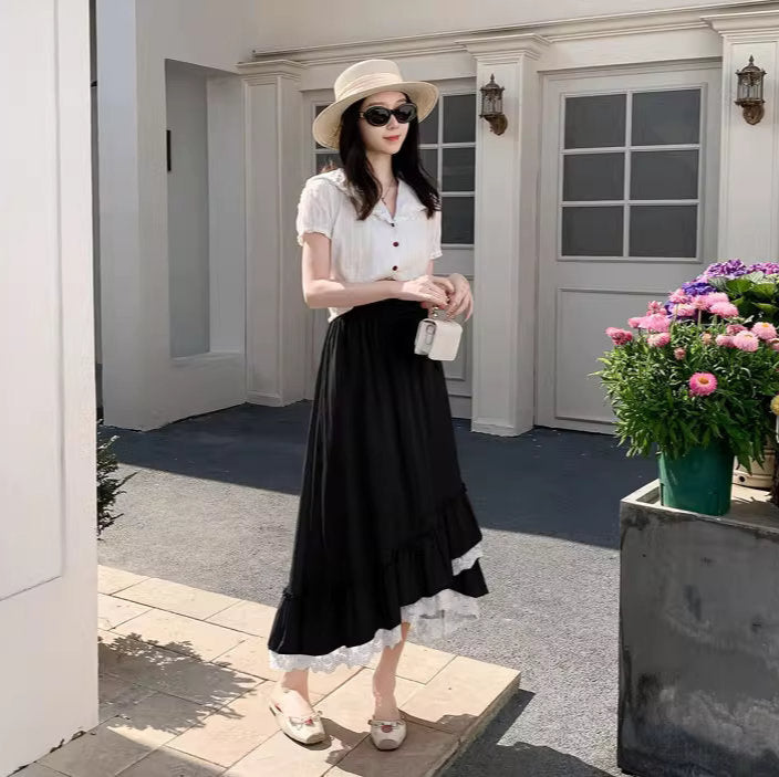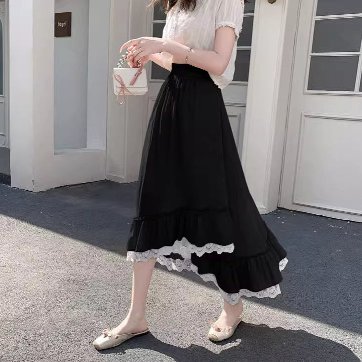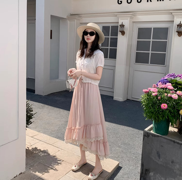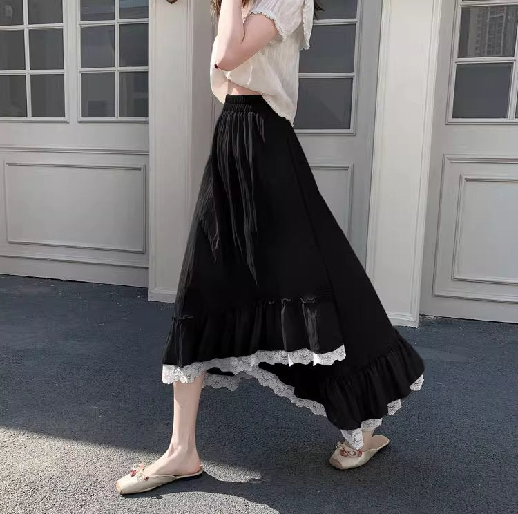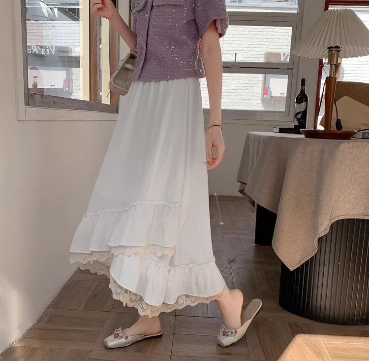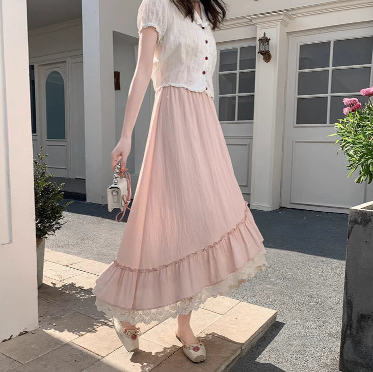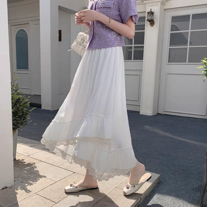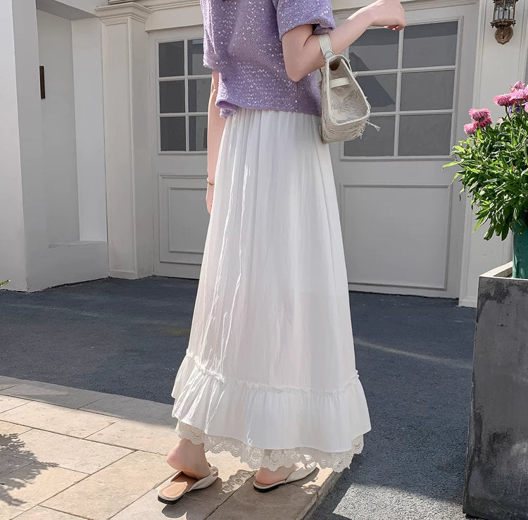 バラの庭を歩く日のレースフリルロングスカート_R0193