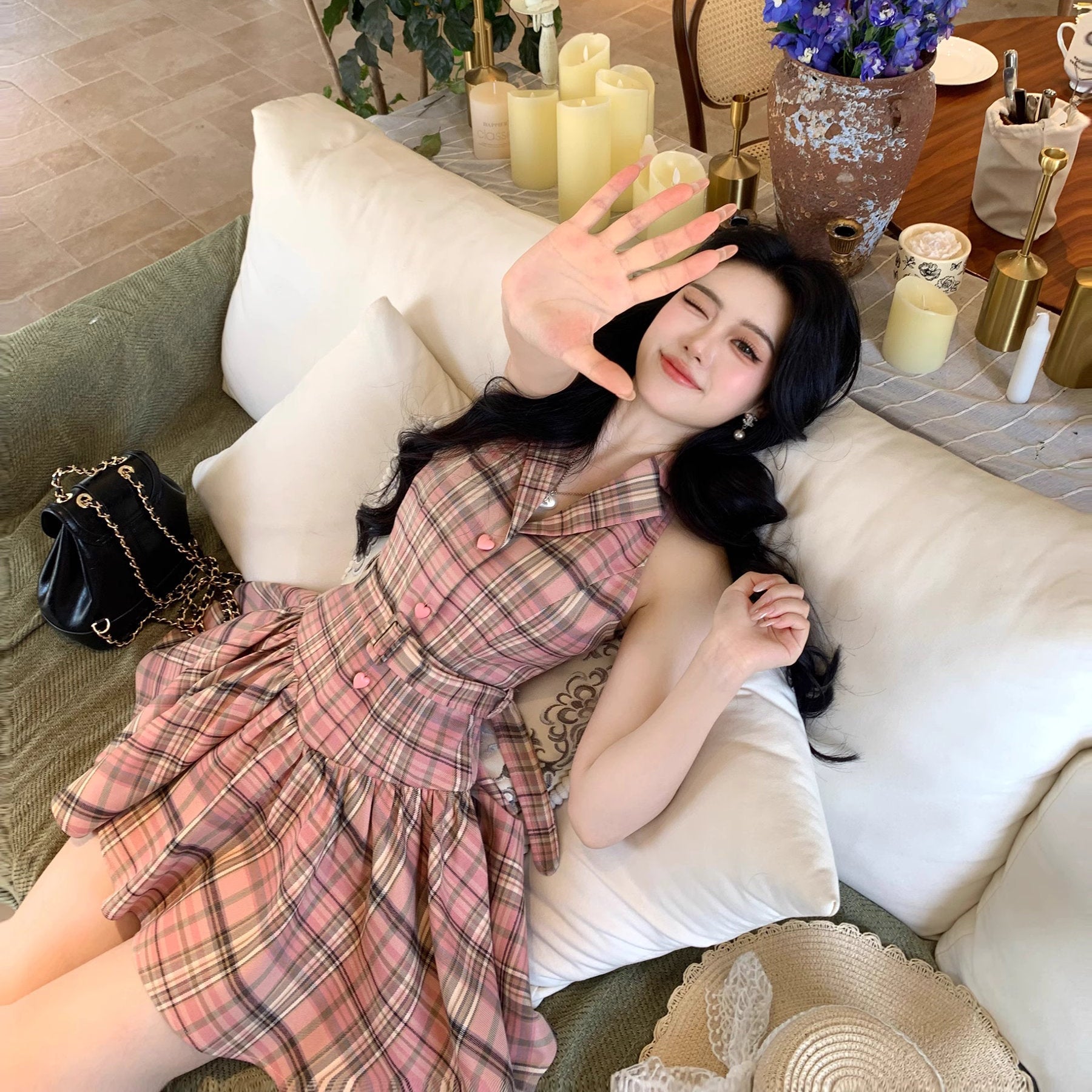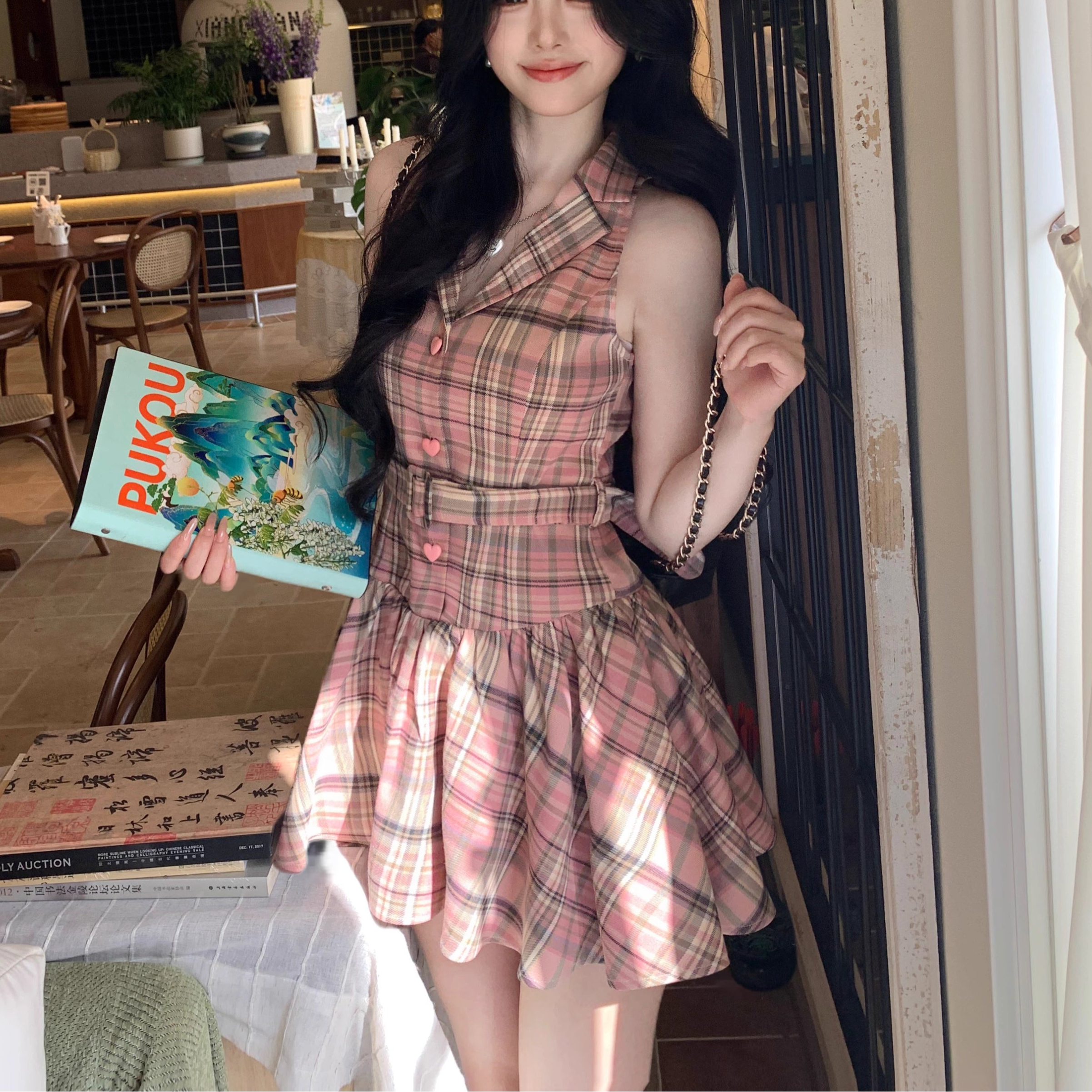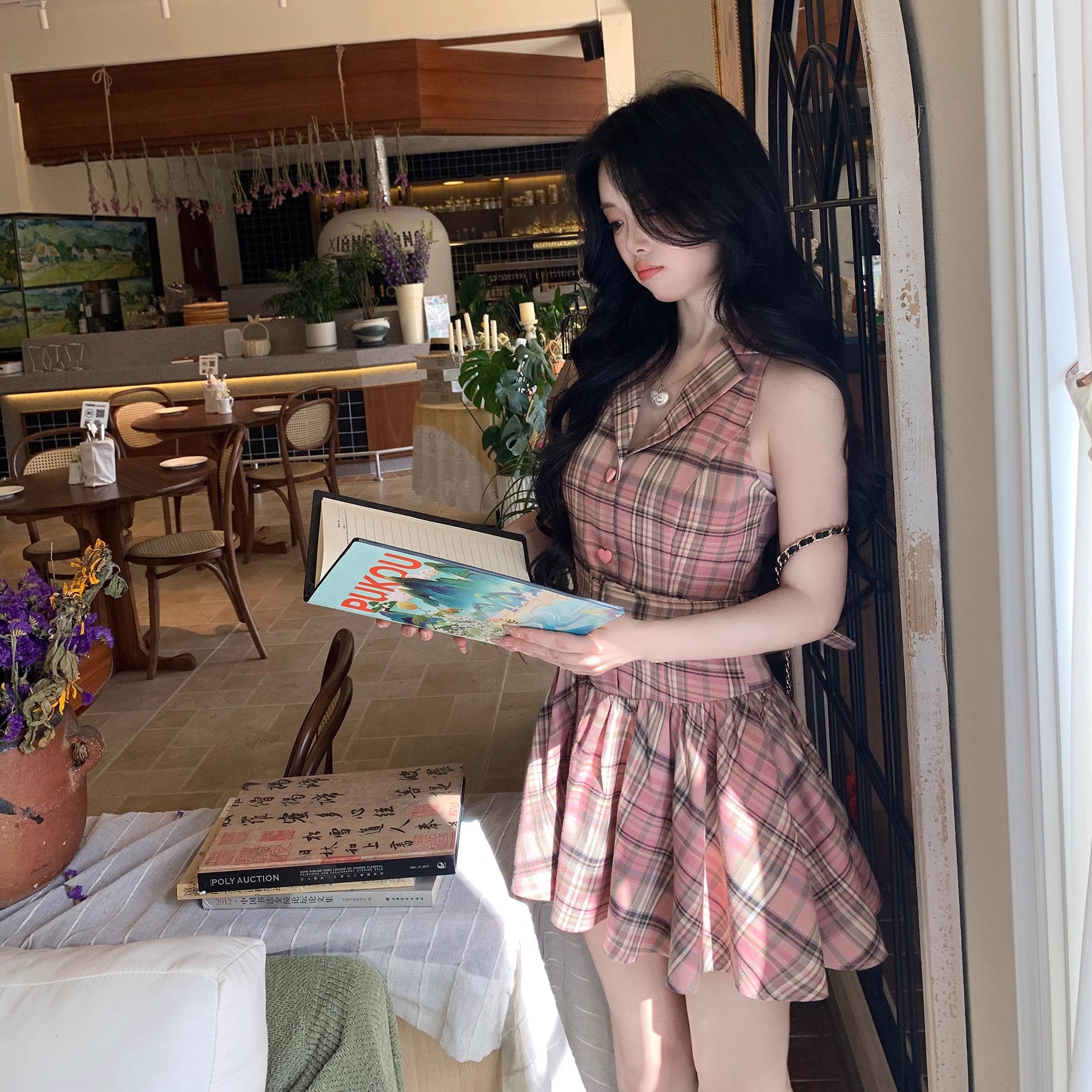 リボンで飾る、午後のティータイムチェックワンピース_R0204