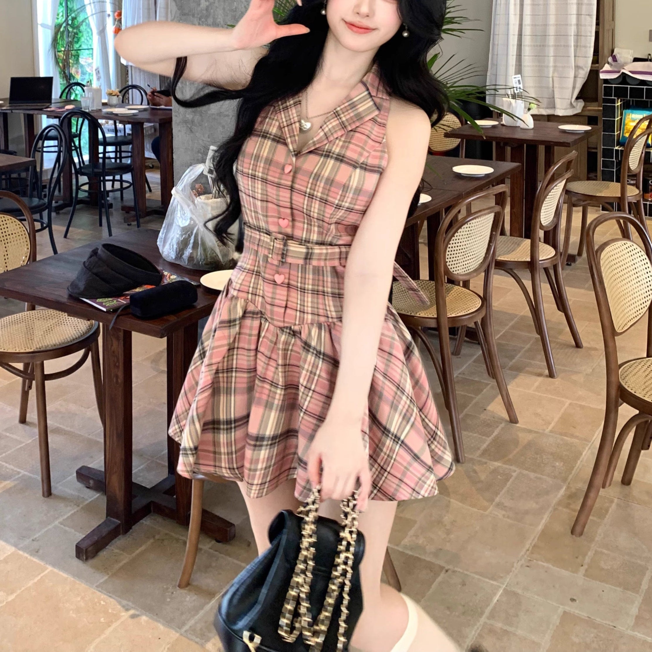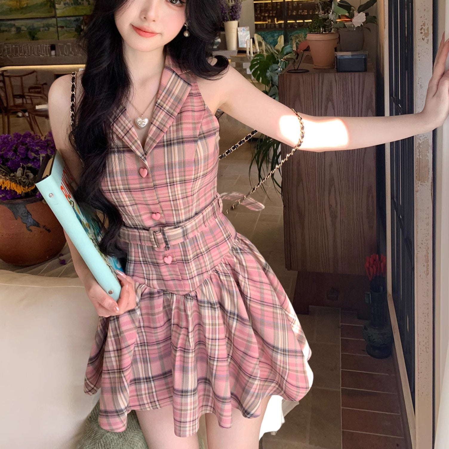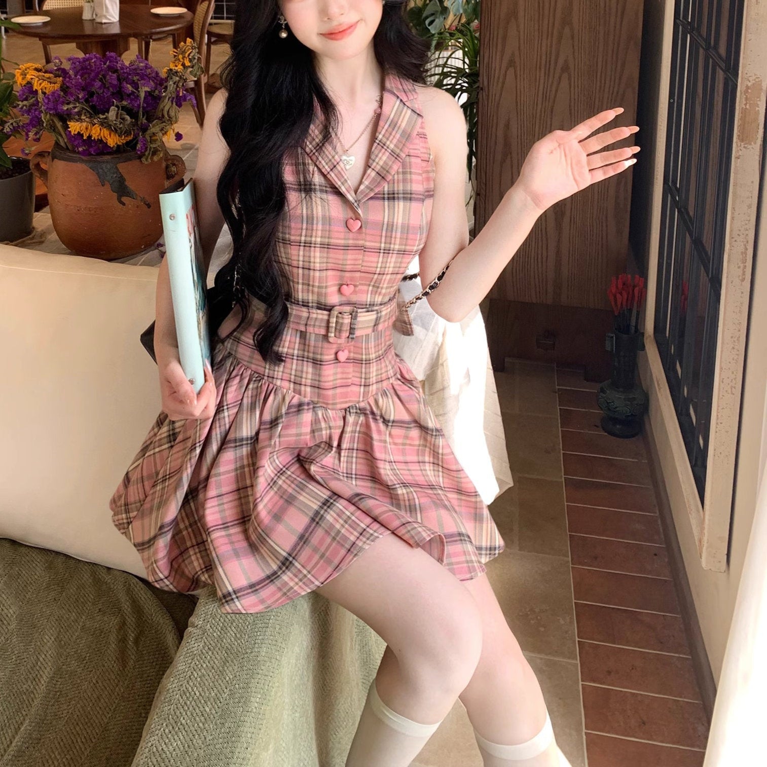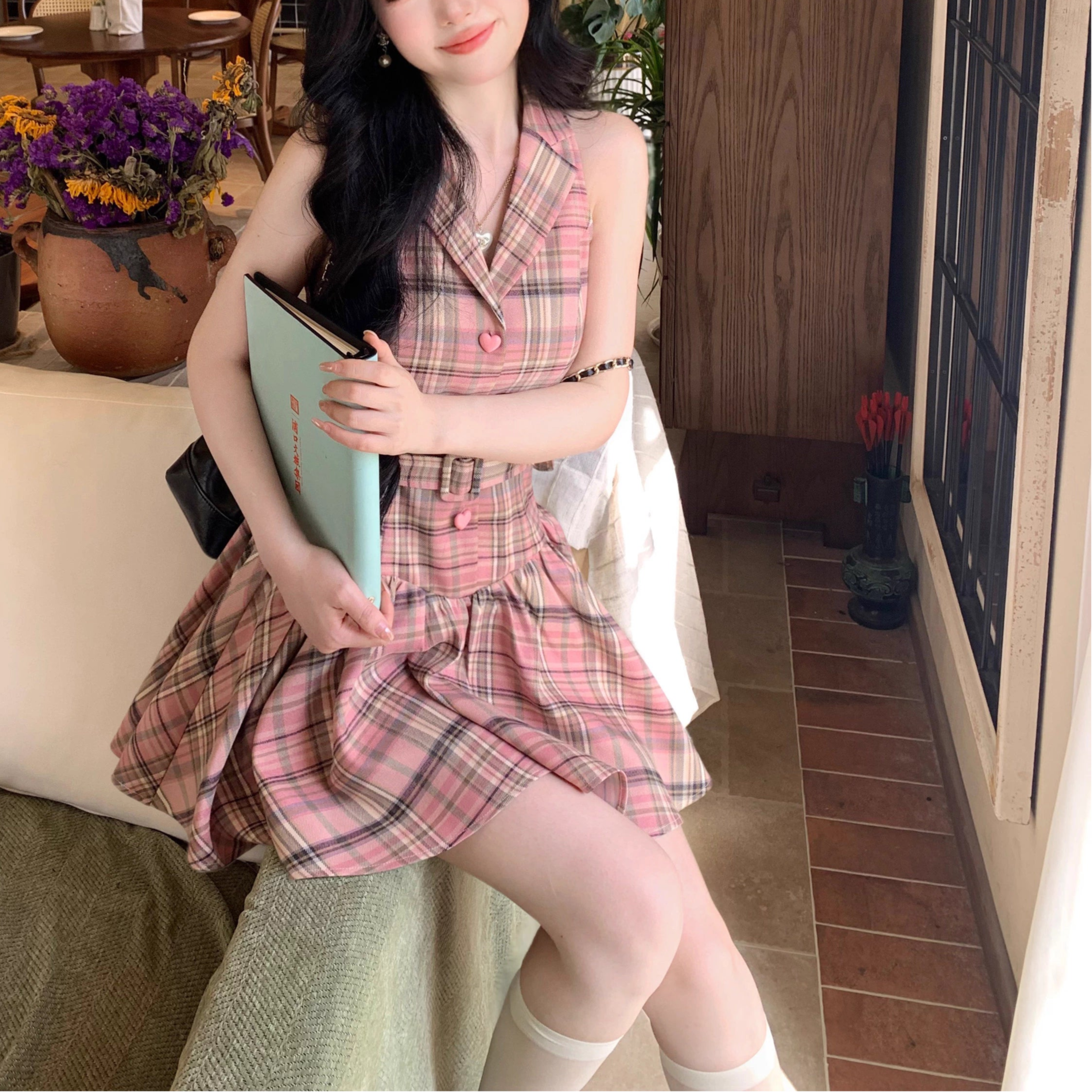 リボンで飾る、午後のティータイムチェックワンピース_R0204