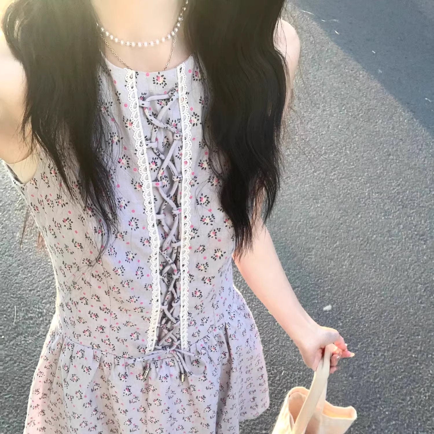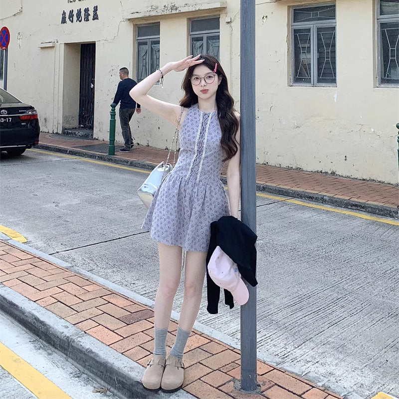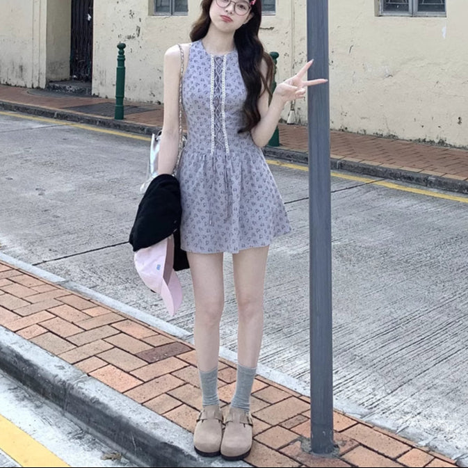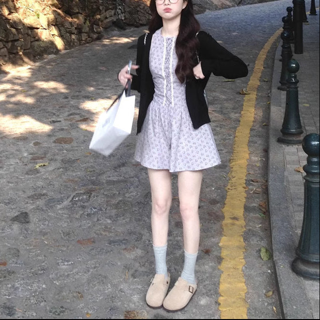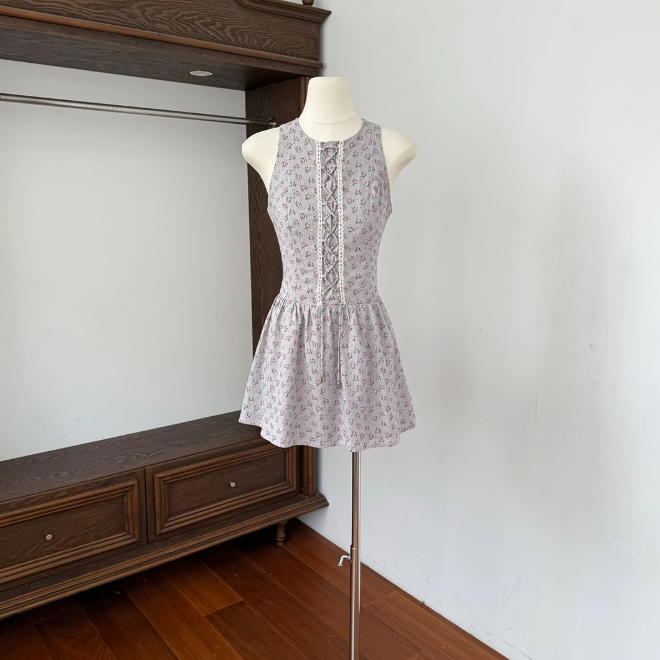 真夏の図書館で彼を待つ、小花柄ミニワンピース_R0205