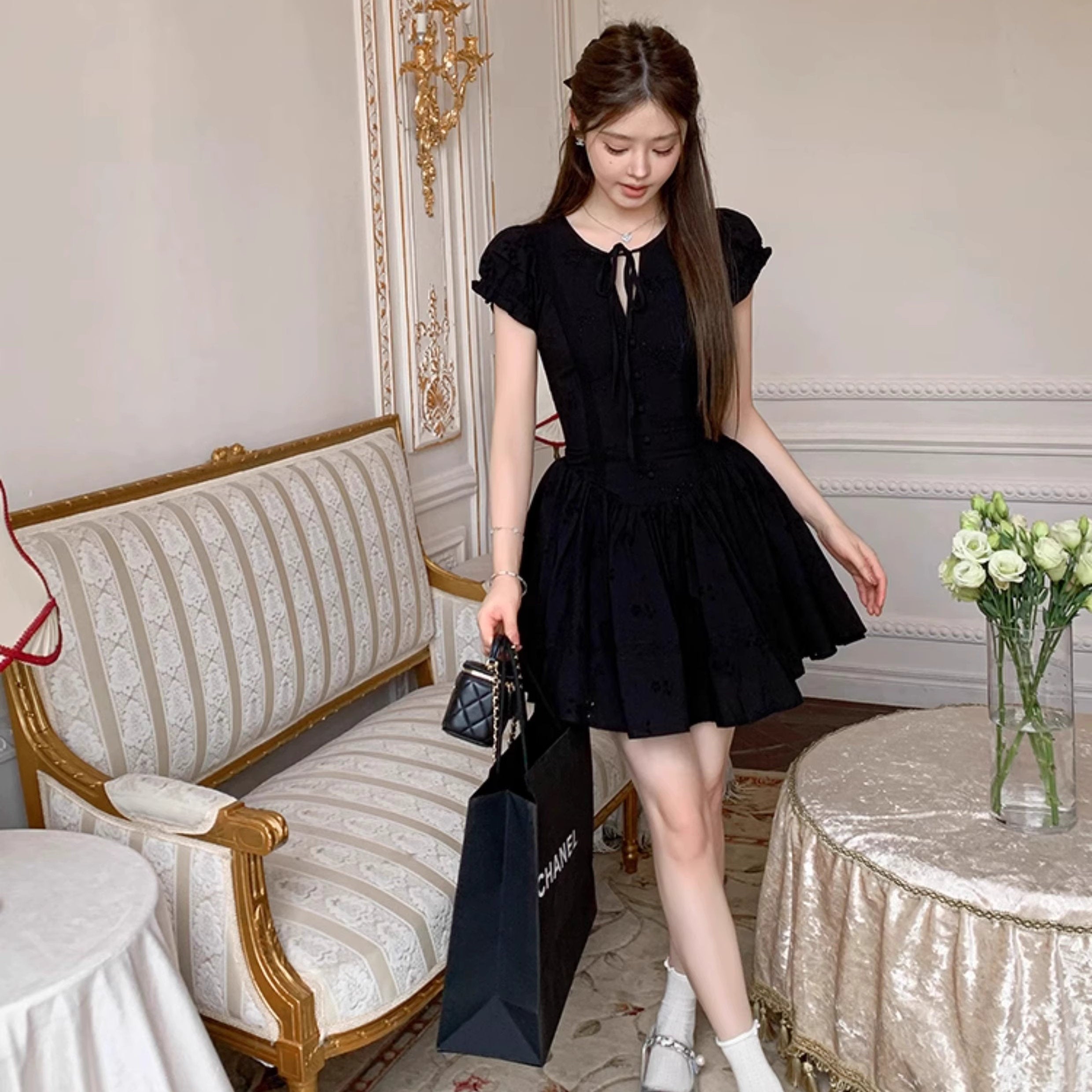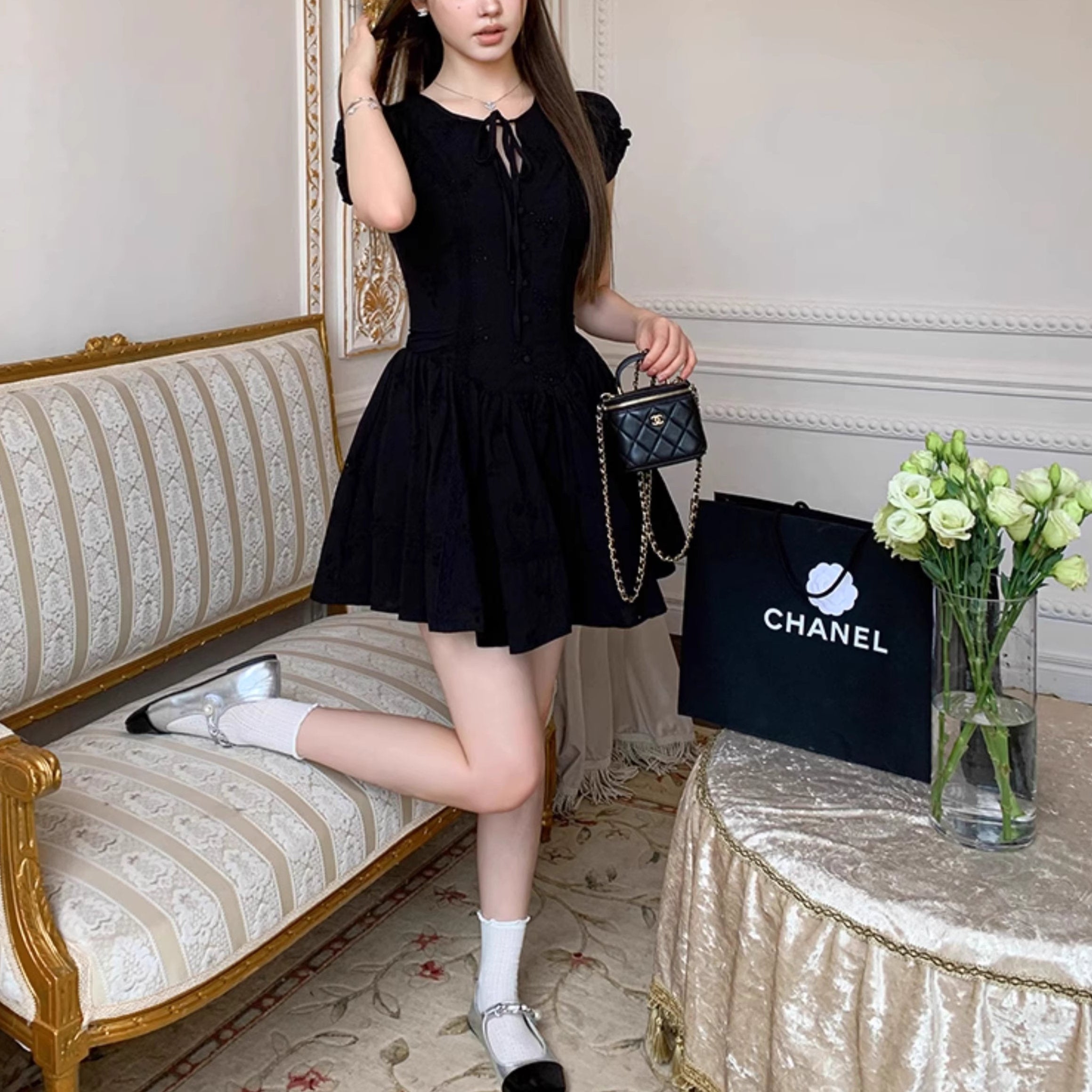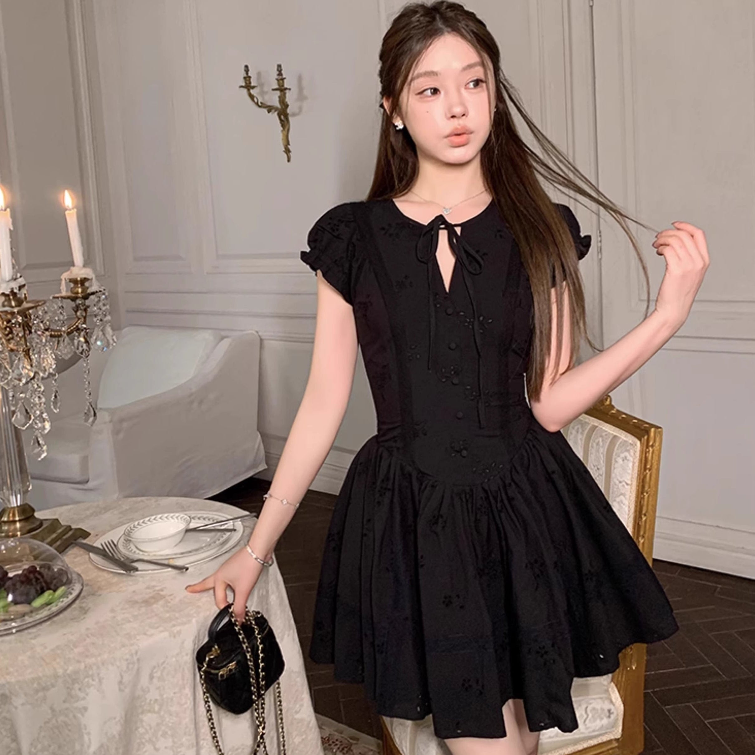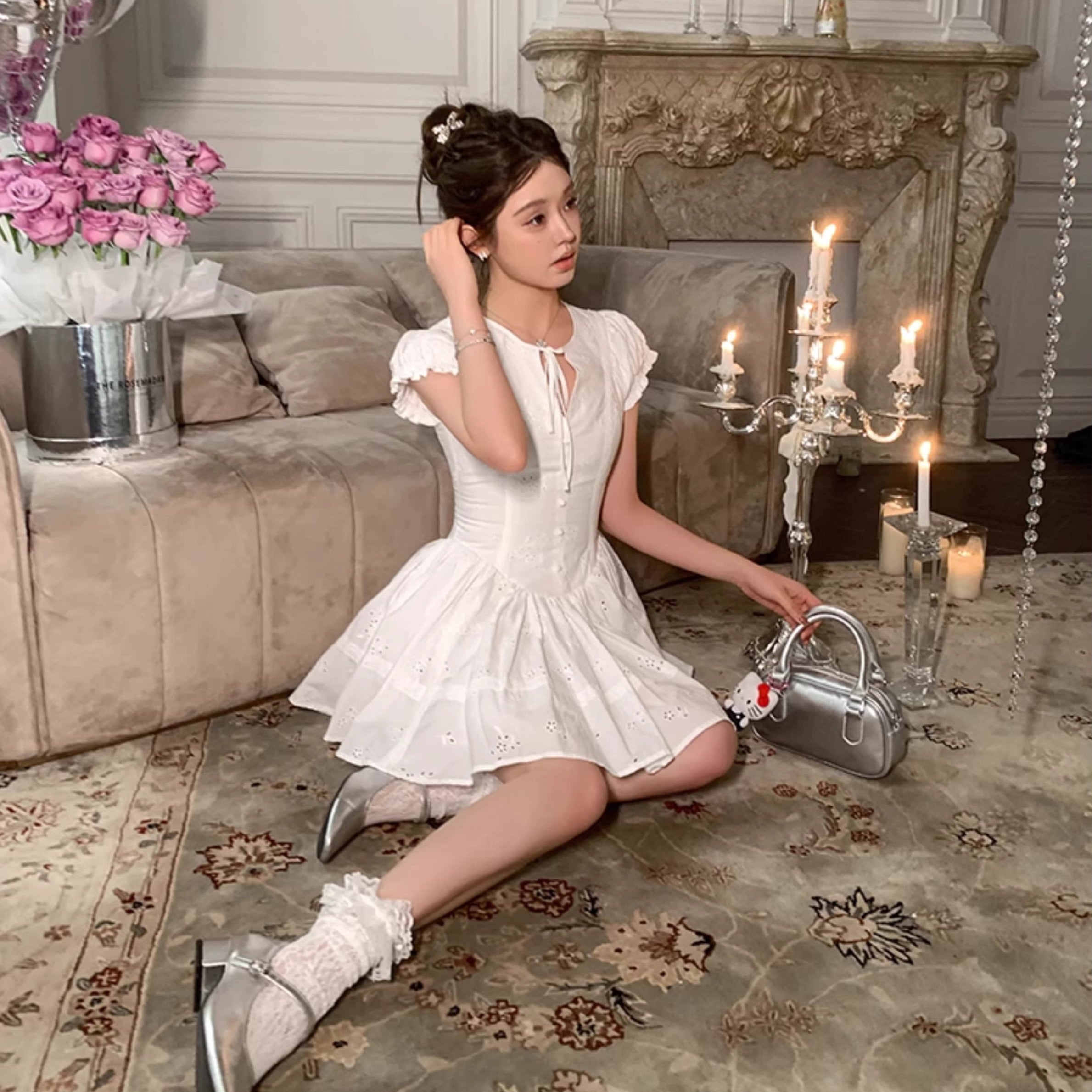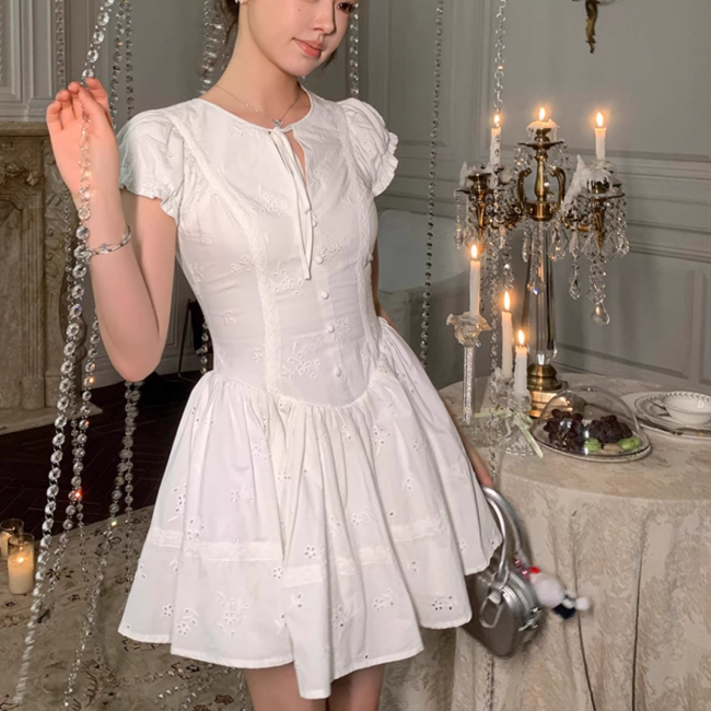 パリの城館で秘密の午後を過ごすフラワーレースワンピース_R0208