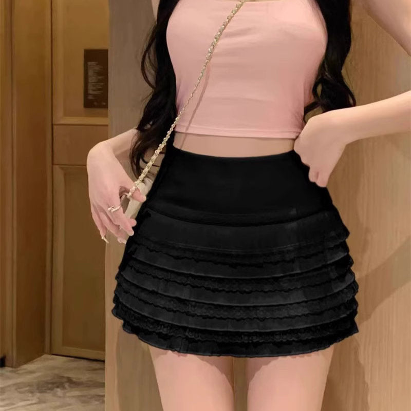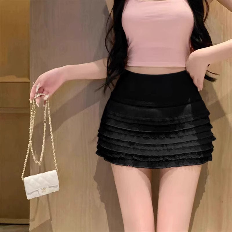 繊細なレースフリルが重なったレイヤードスカート♡