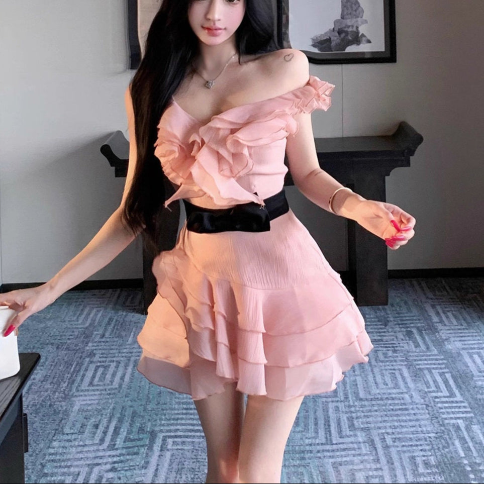 重なるフリルが華やかに揺れる、まるで舞踏会帰りのプリンセスのような一着♡