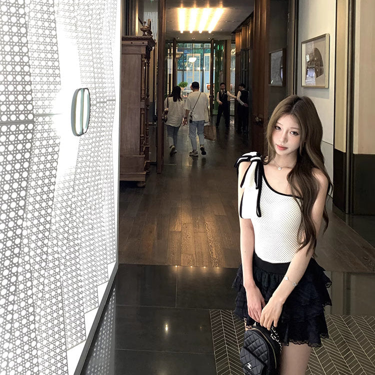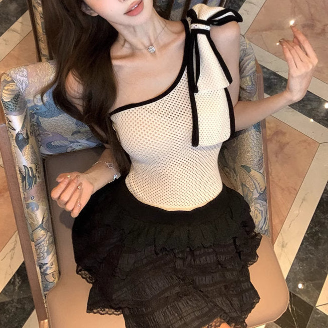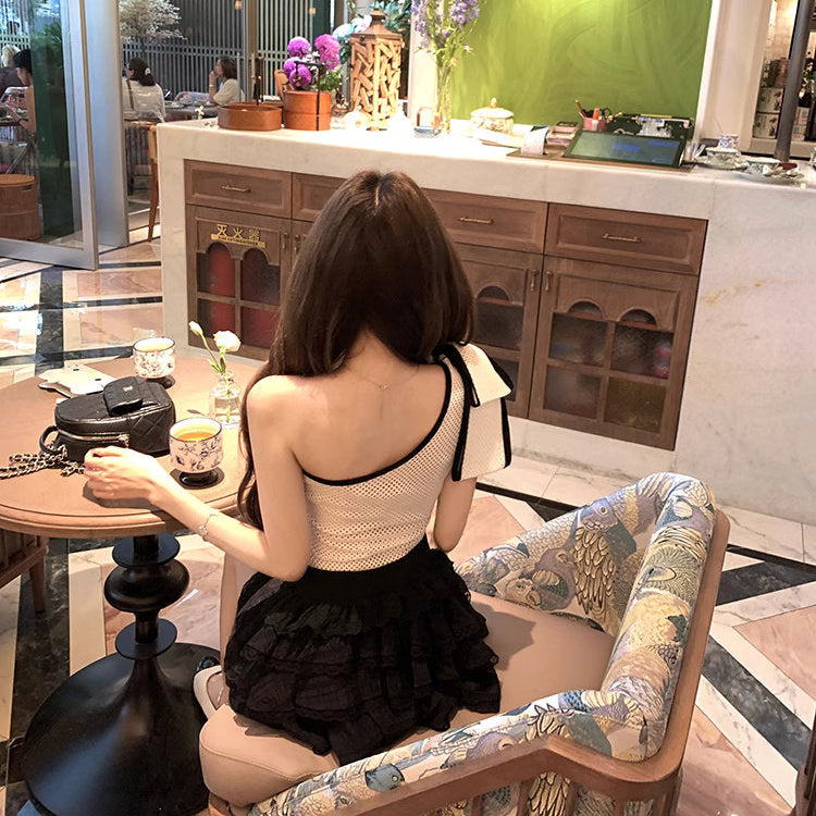 片側リボンで“抜け感”をプラスしたワンショルダーのトップス♡