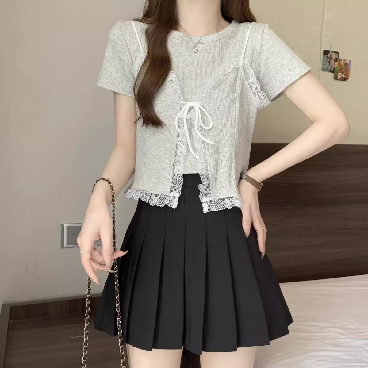 繊細なレースとコンパクトなシルエットが甘すぎない愛らしさを演出する一枚♡