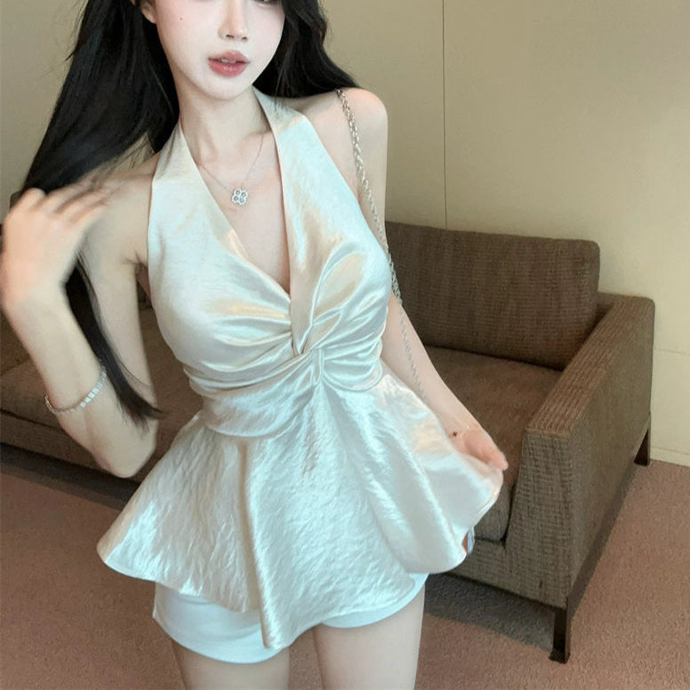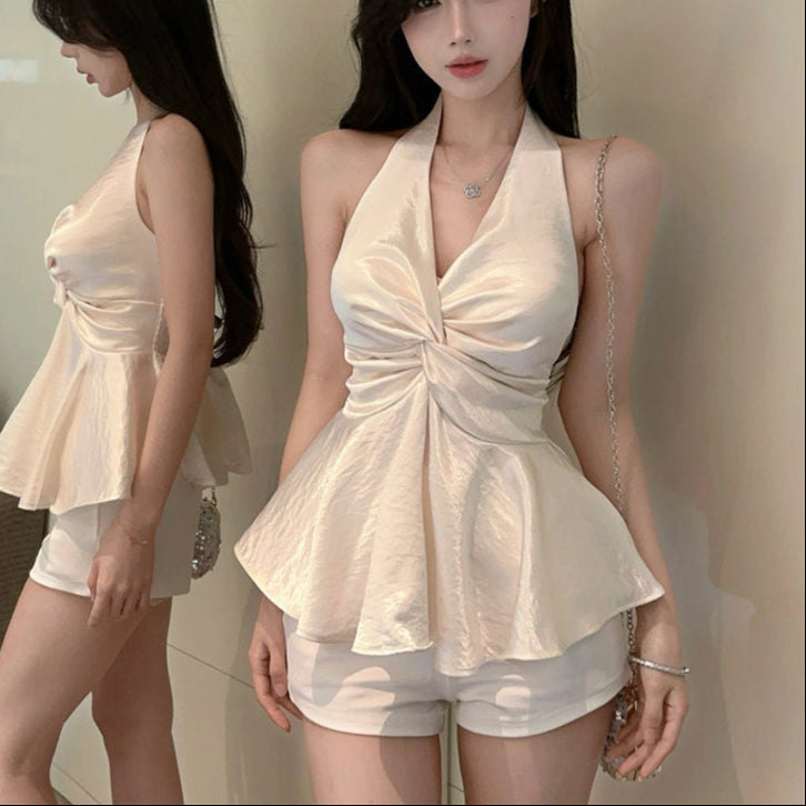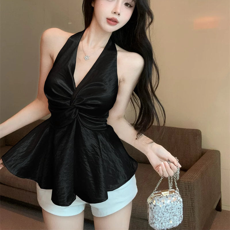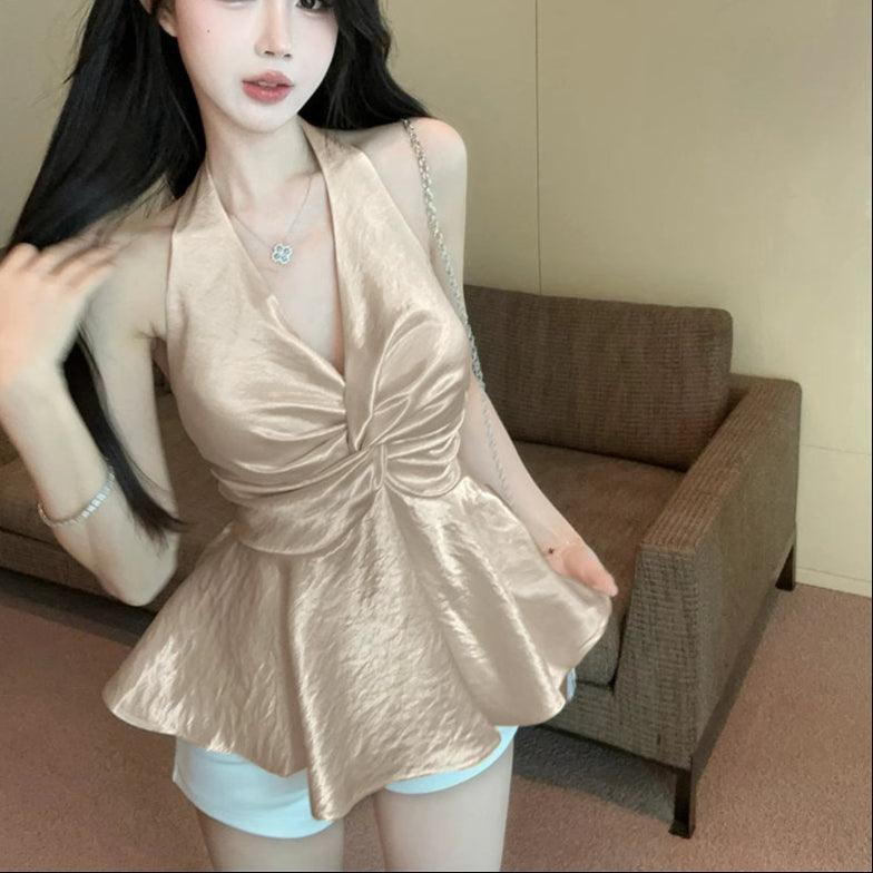 ナイトクルーズで恋を誘うサテンペプラムトップス_R0253