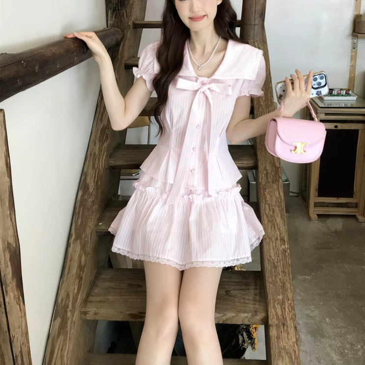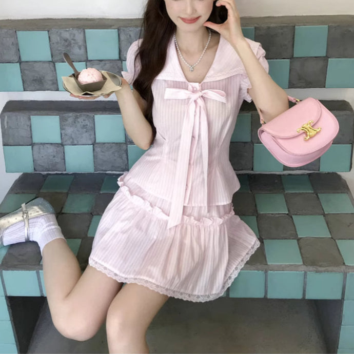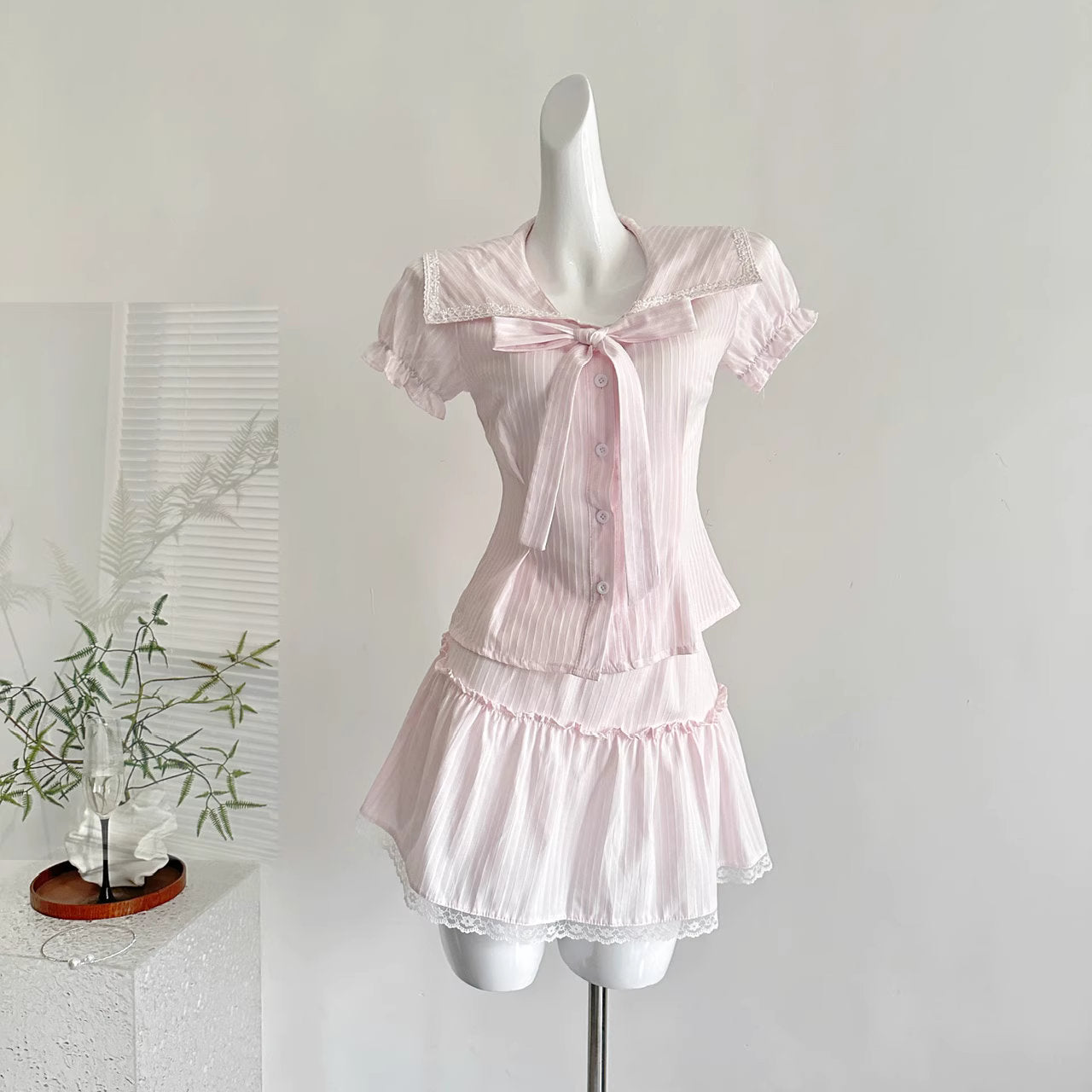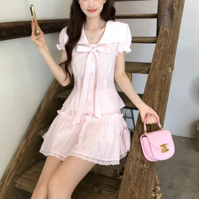 初恋の記憶が香る、白い階段とリボンのワンピース_R0257