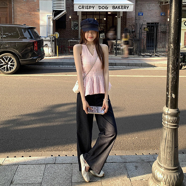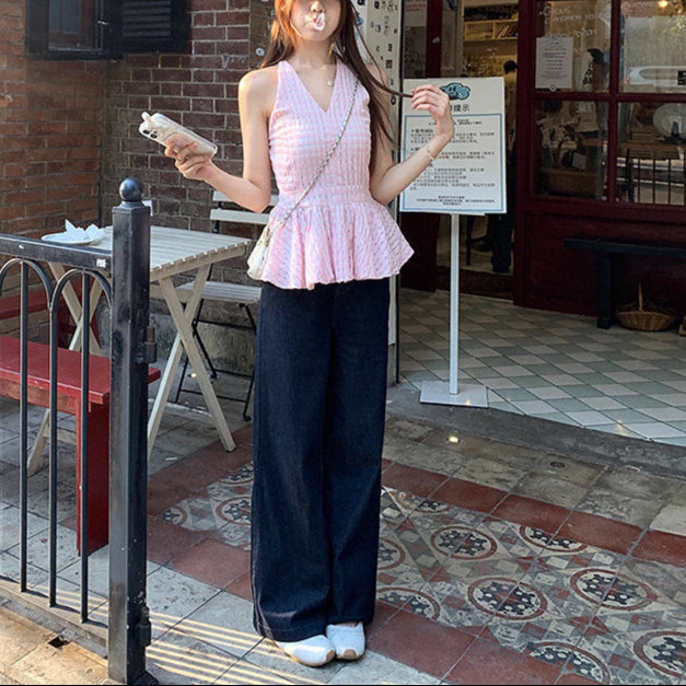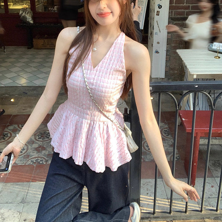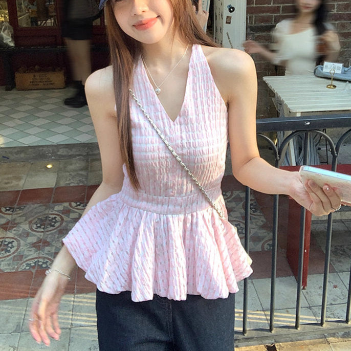 ふんわりと広がるペプラムデザインのノースリーブトップス♡