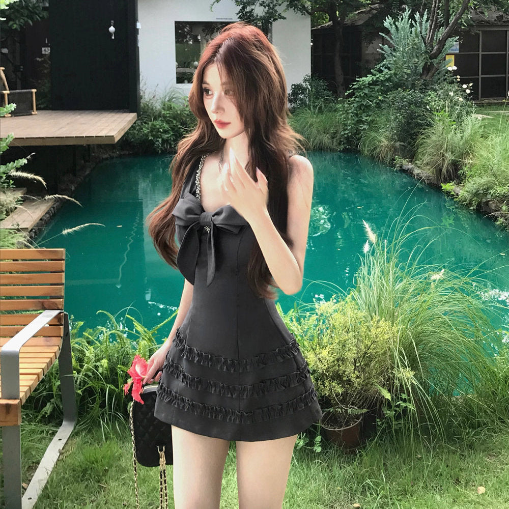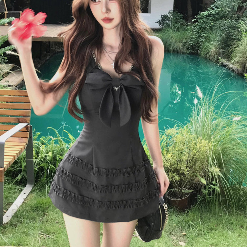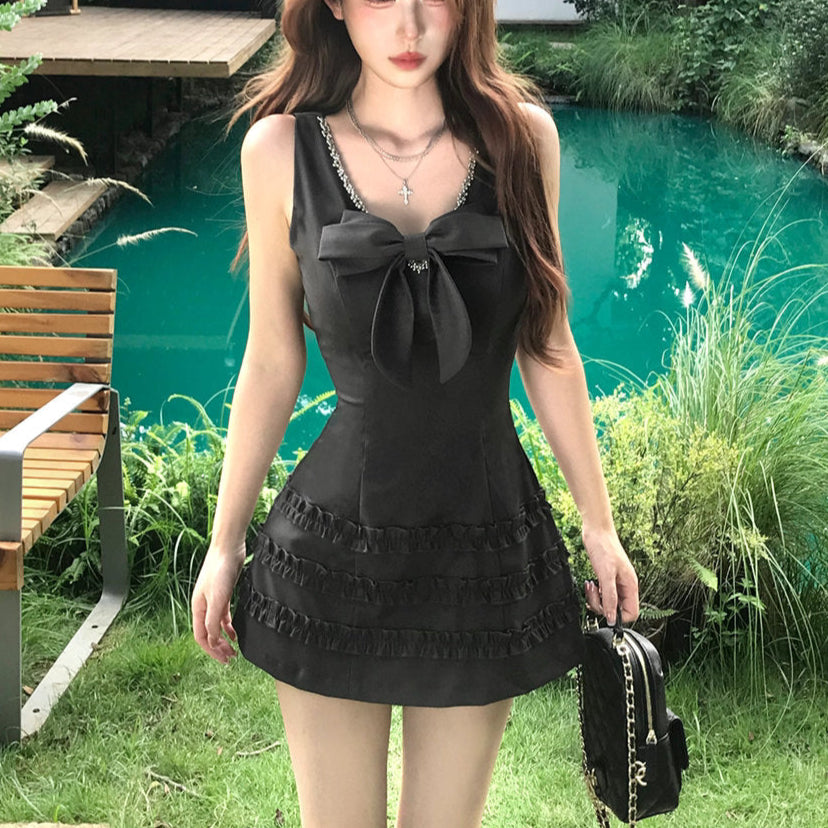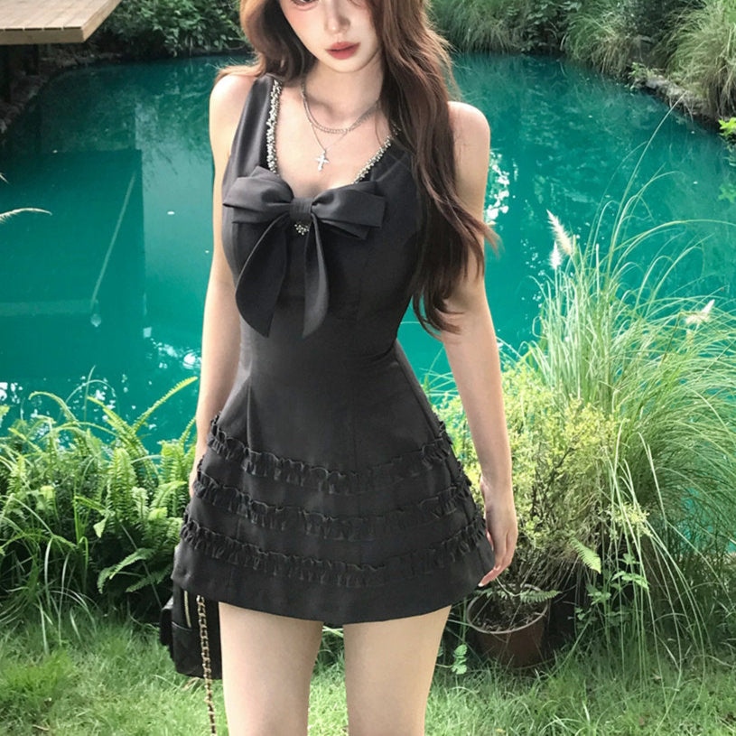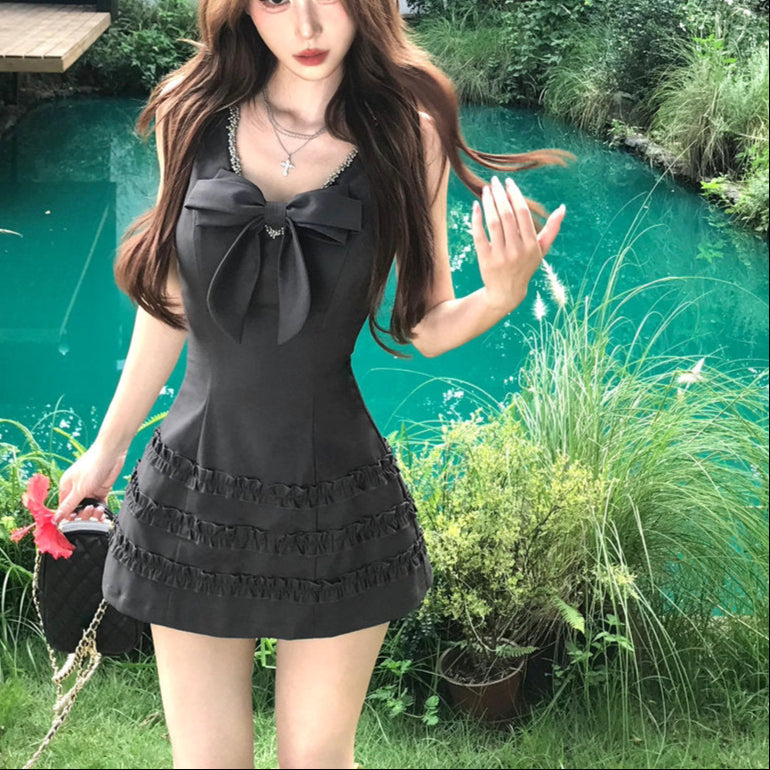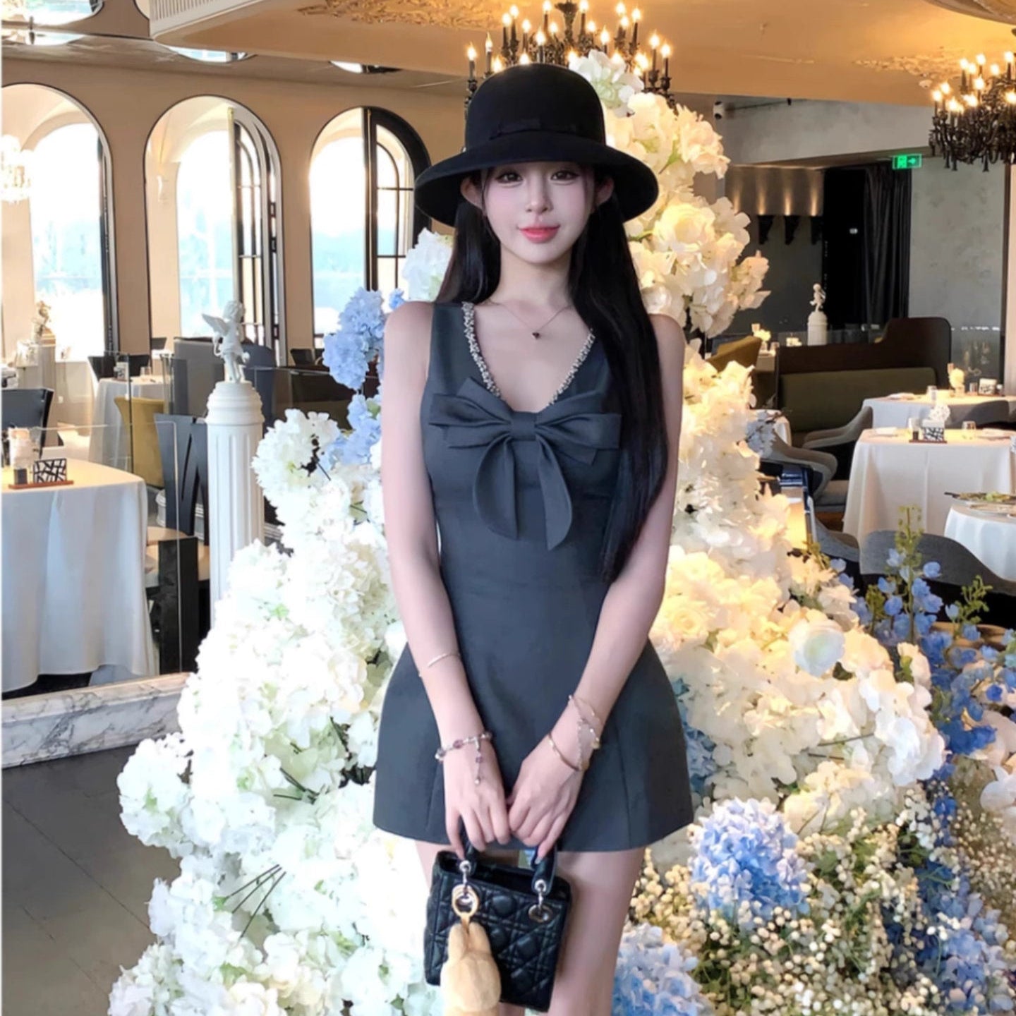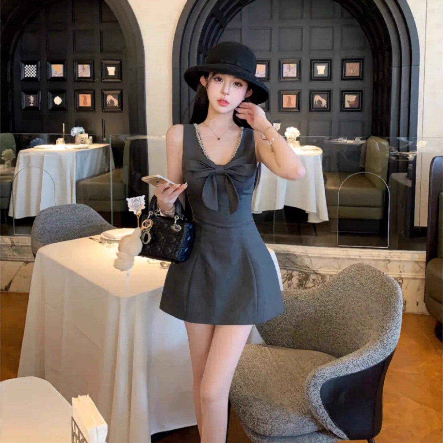 胸元の大きなリボンが印象的なノースリーブワンピース♡