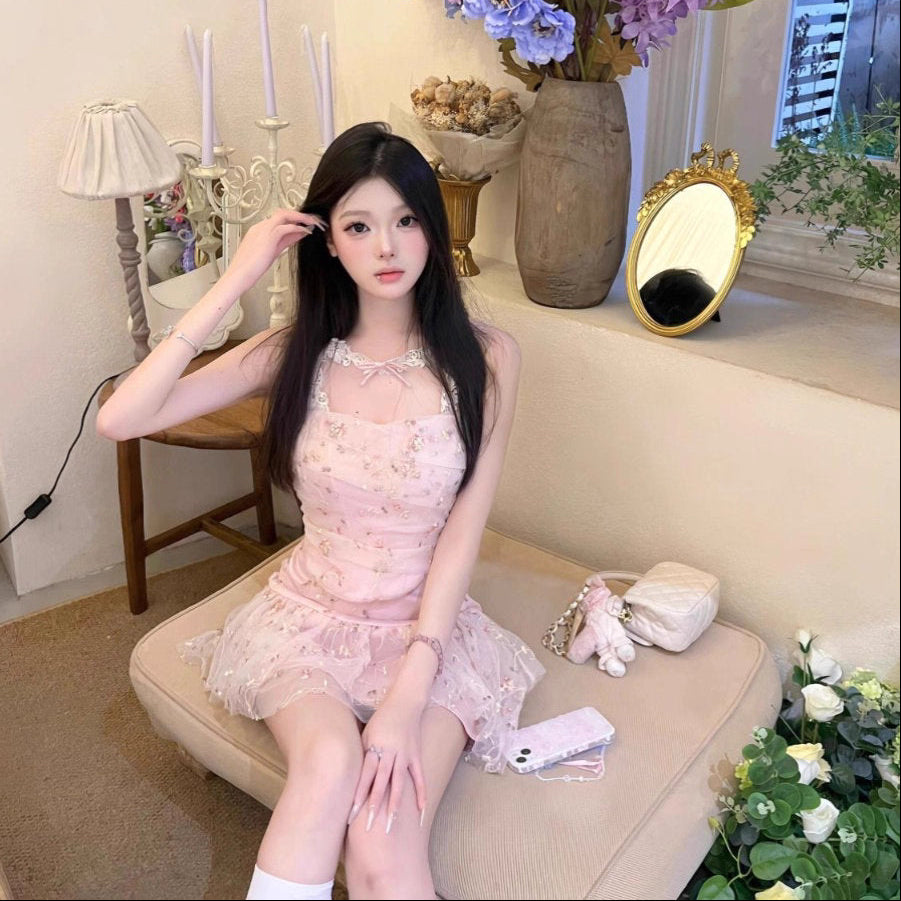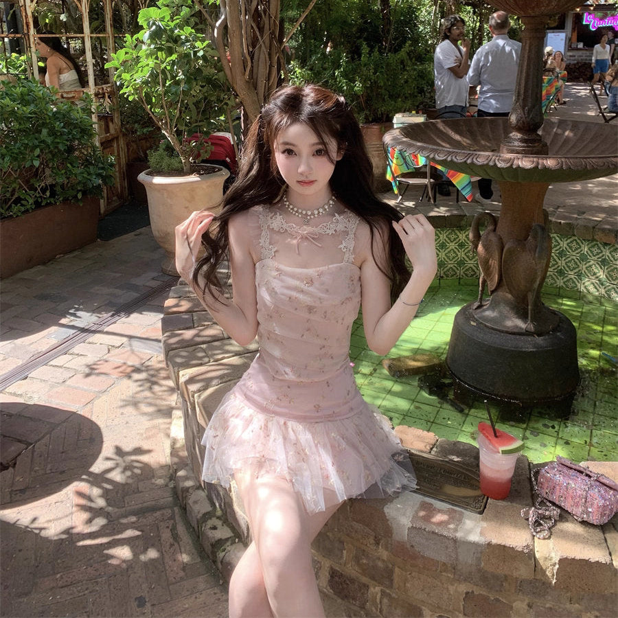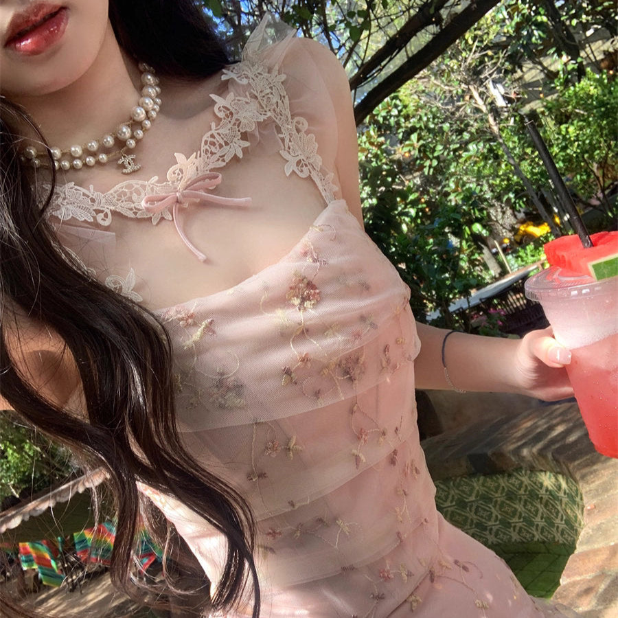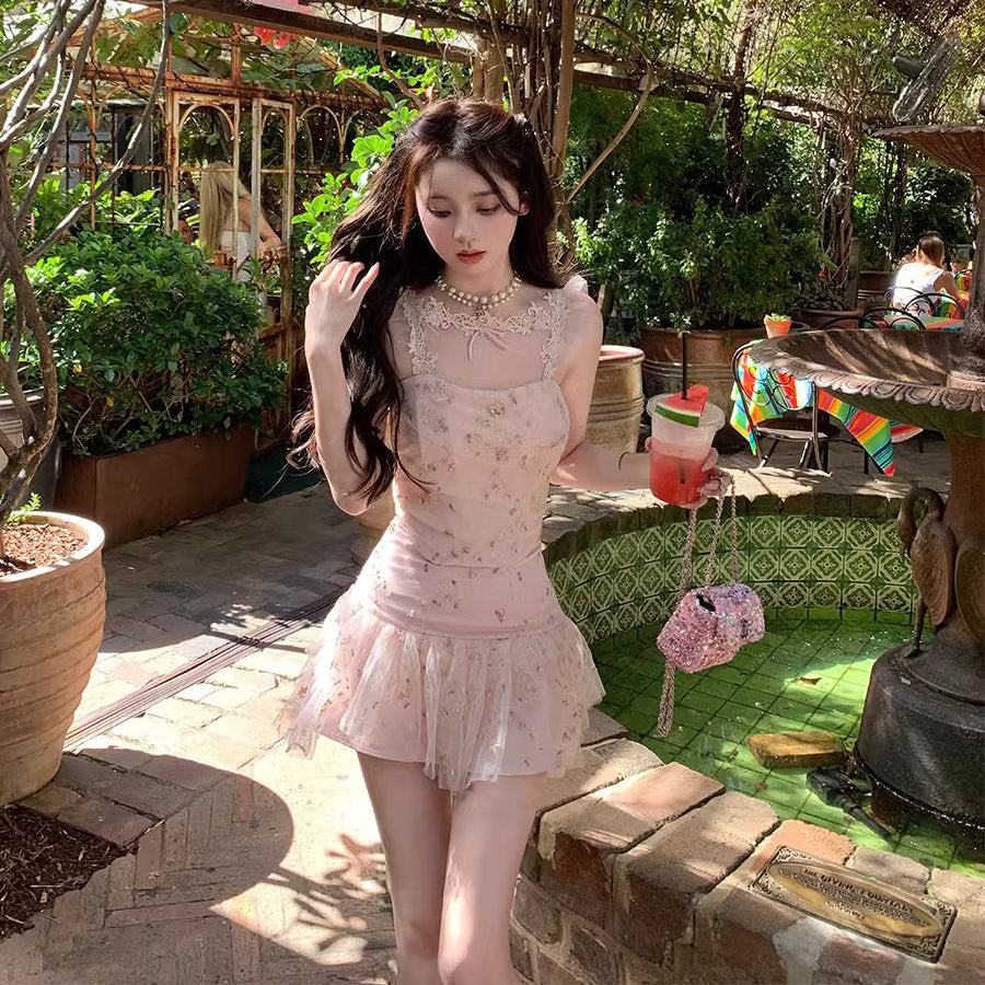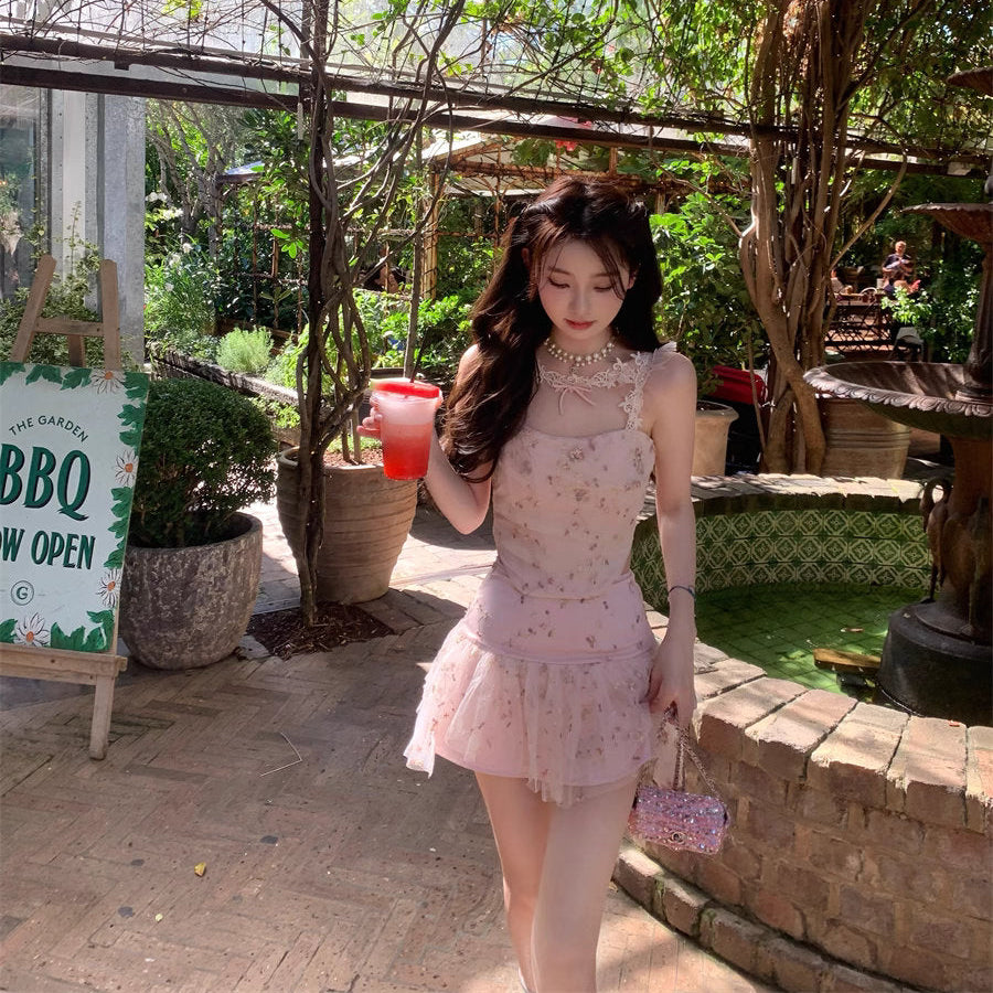 ふわりと風をはらむチュールスカートに、小花の刺繍がちりばめられたセットアップ♡