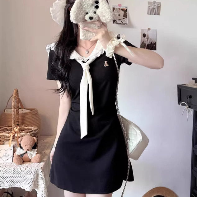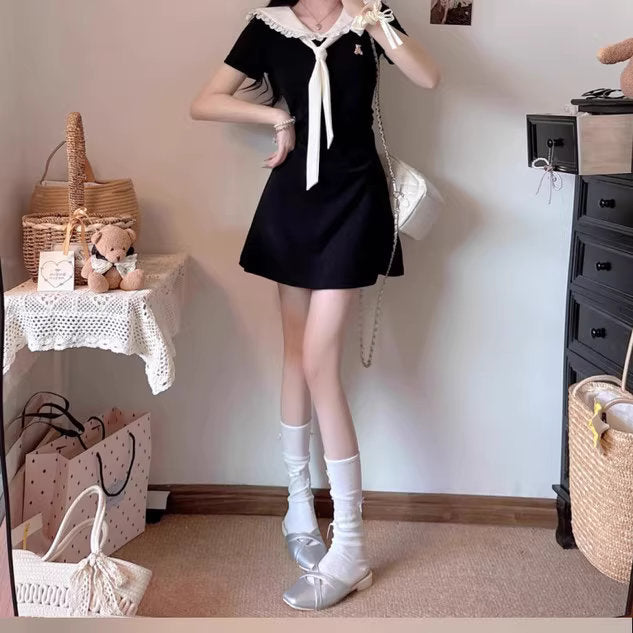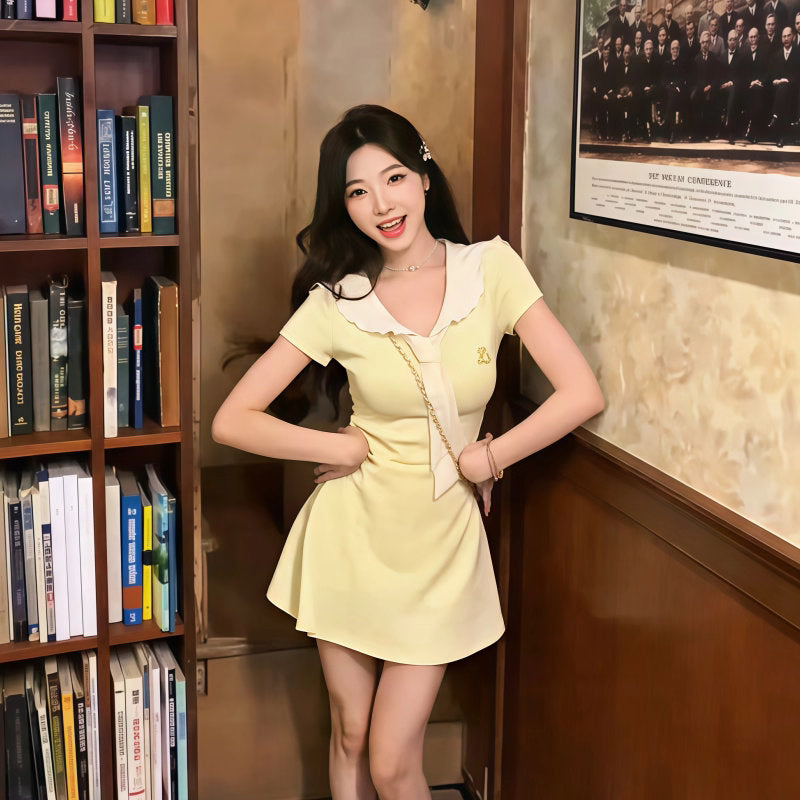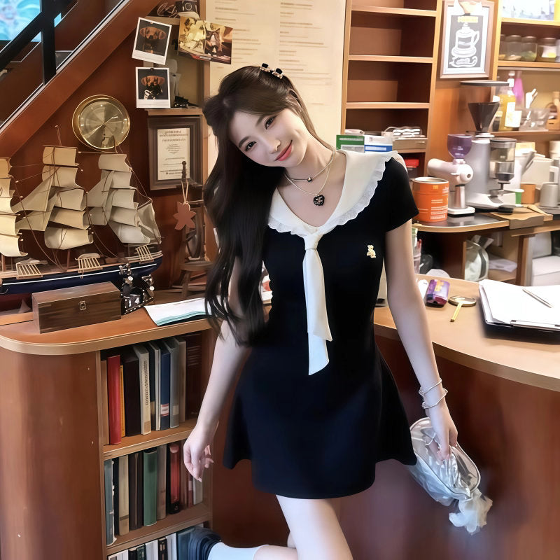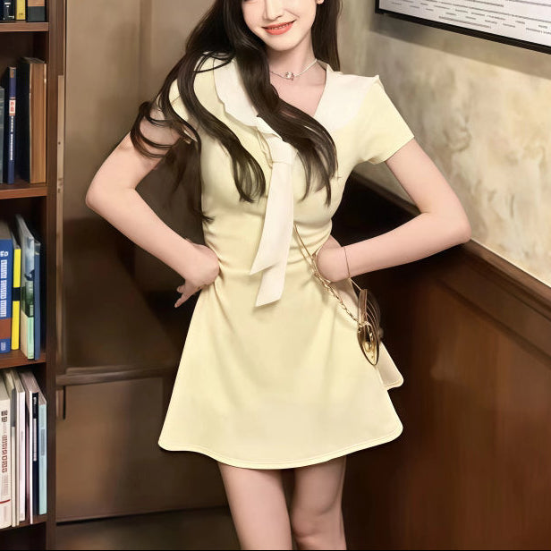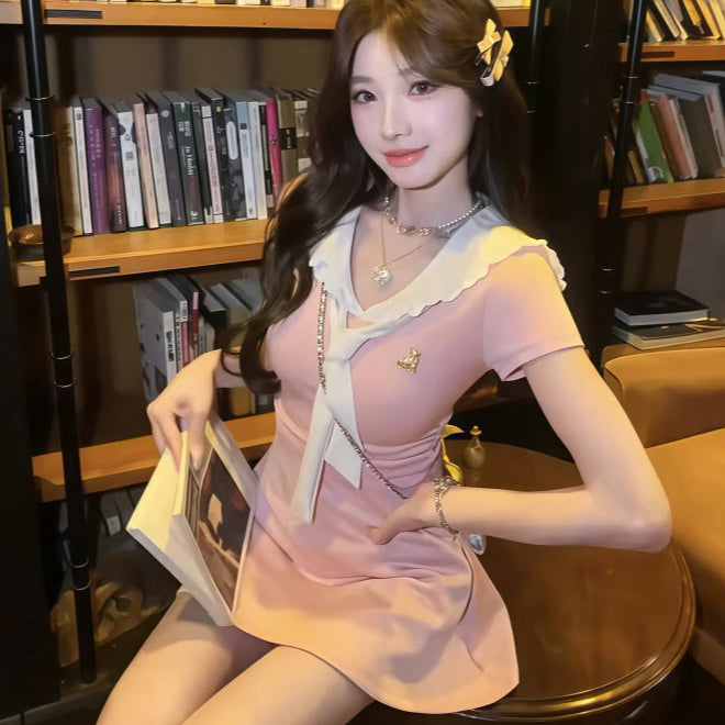 やわらかなカラーに、ホワイトのセーラーカラーが映える