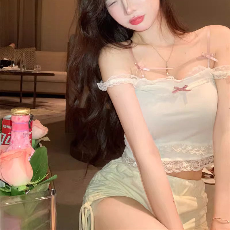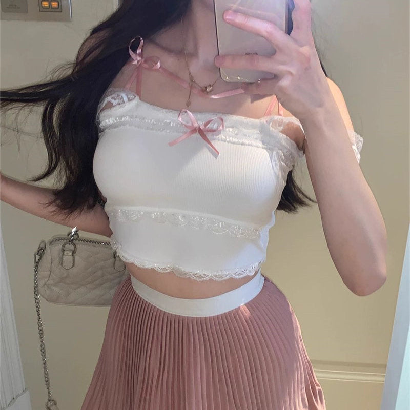 ふわっと浮かぶレースで仕上げた、甘さ120%のあざとキャミ♡