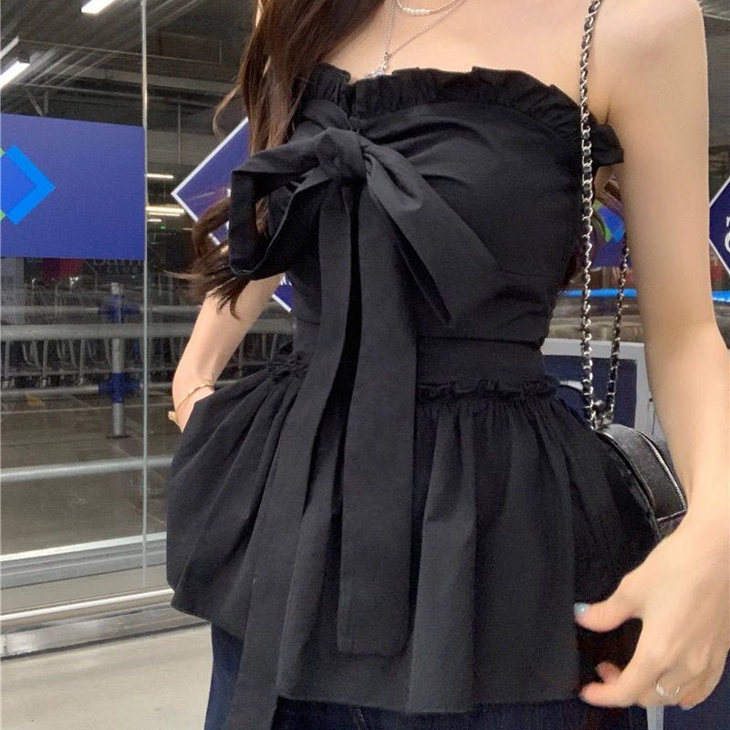 ウエストをきゅっと引き締めて、ふんわり広がるペプラムラインが