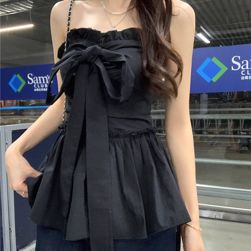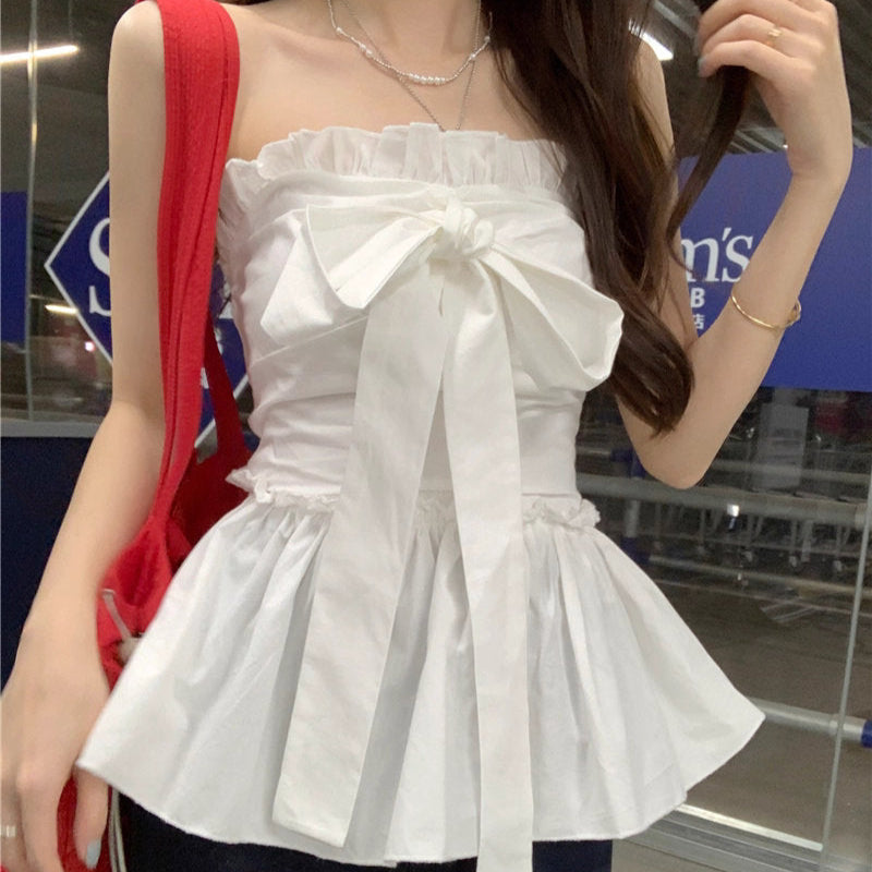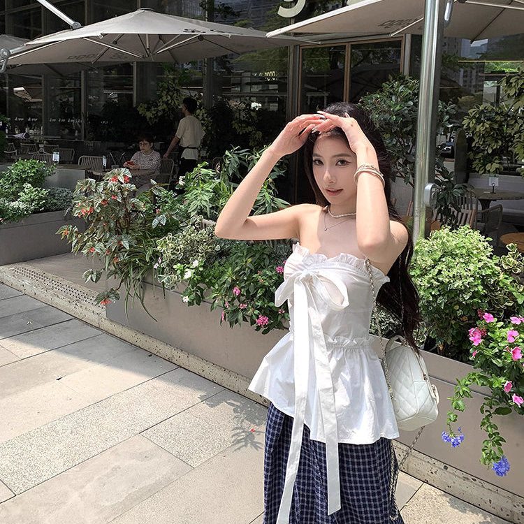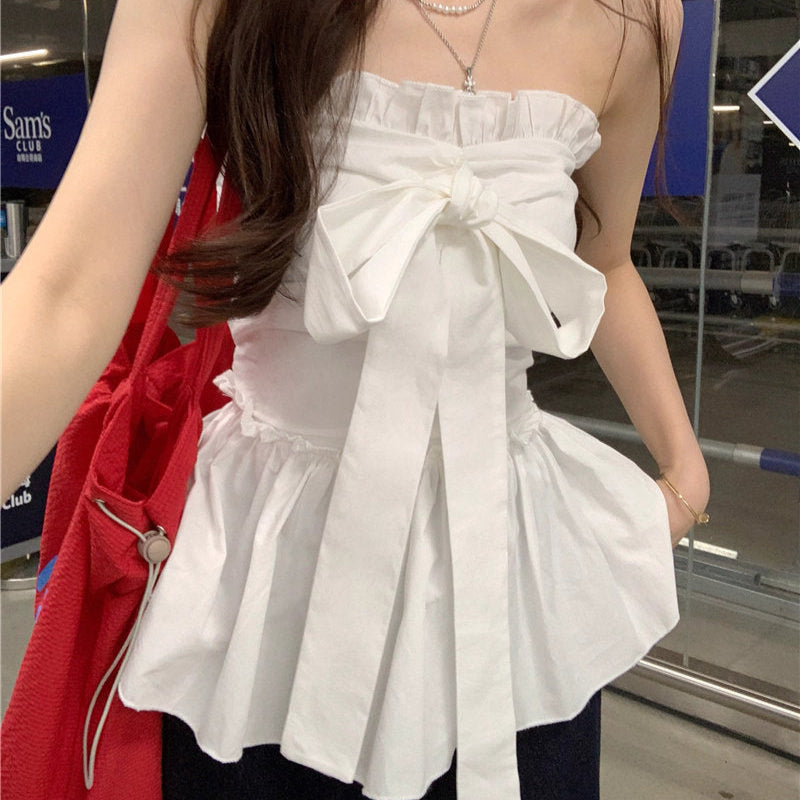 肩まわりはすっきりとしたチューブデザインで、デコルテを綺麗に魅せてくれます。