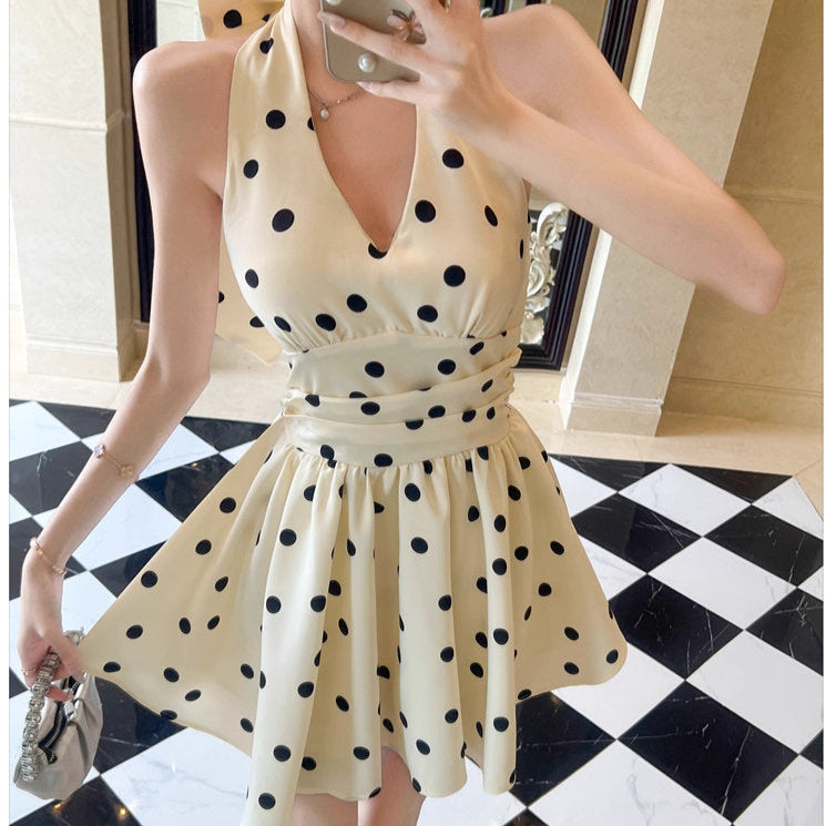 彼と恋人つなぎした夜のドットワンピース_R0288