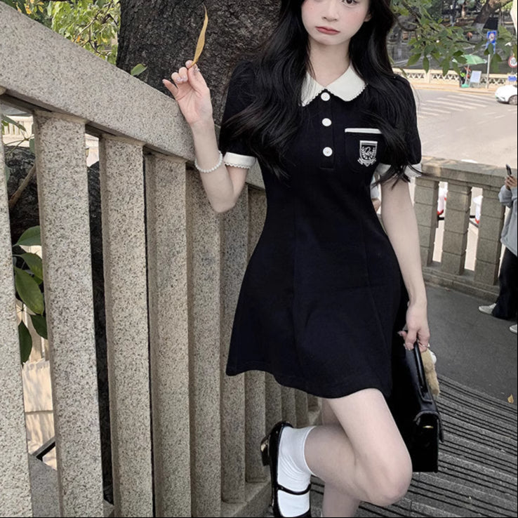 美術館のあとに向かう白襟のクラシックワンピース_R0300