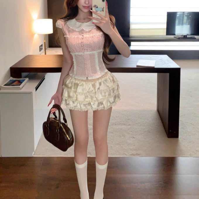 苺ミルクが好きなあの子のフリルドットトップス_R0303