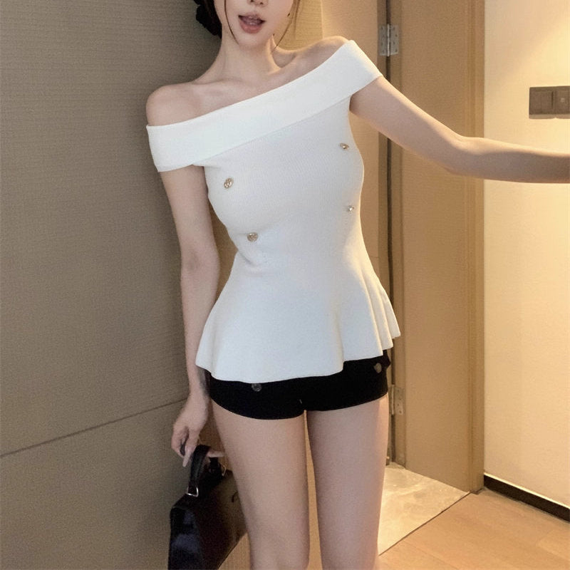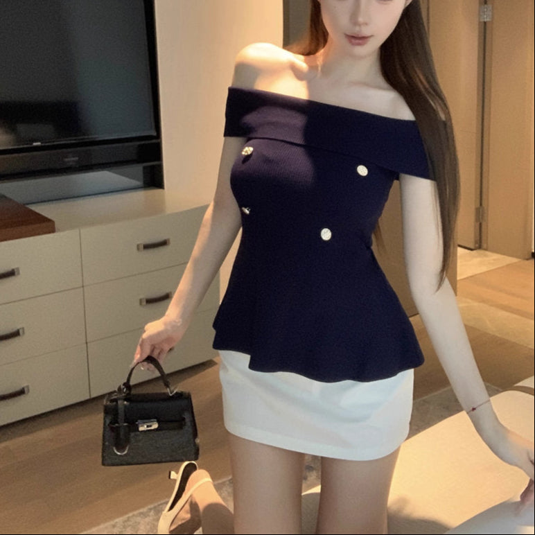 ときめきと気品のフレア襟のマーメイドトップス_R0315