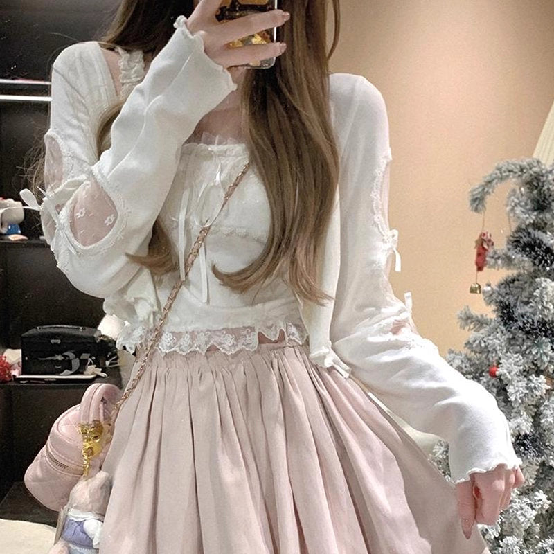 レースの窓から覗く恋心を映したシアーカーディガン_R0328