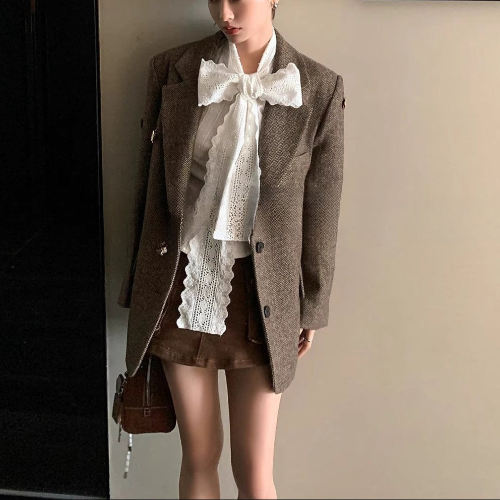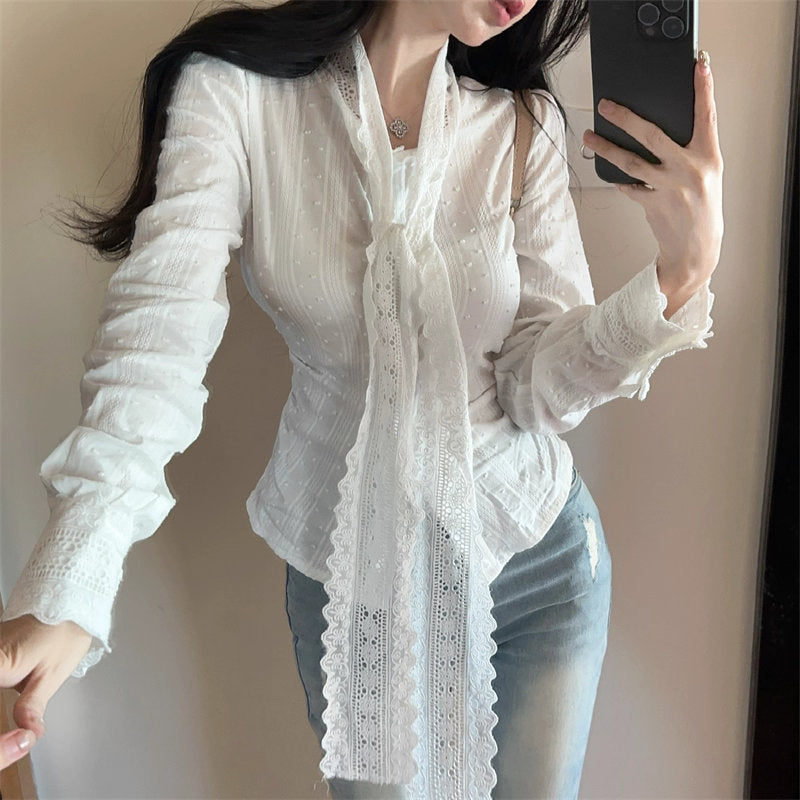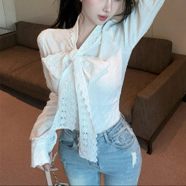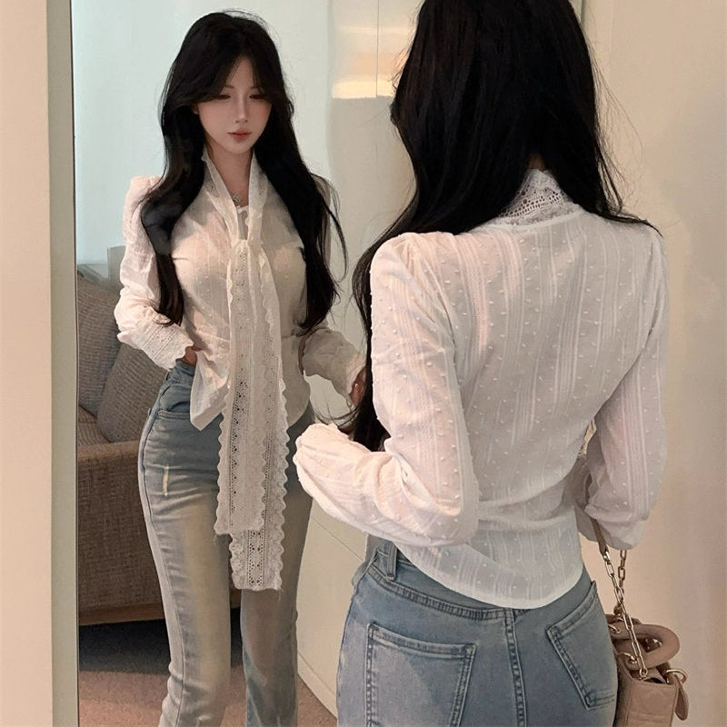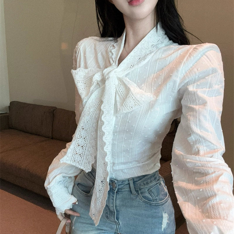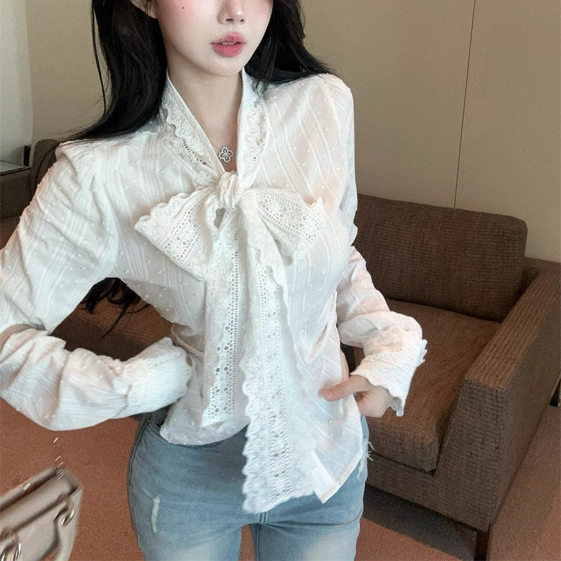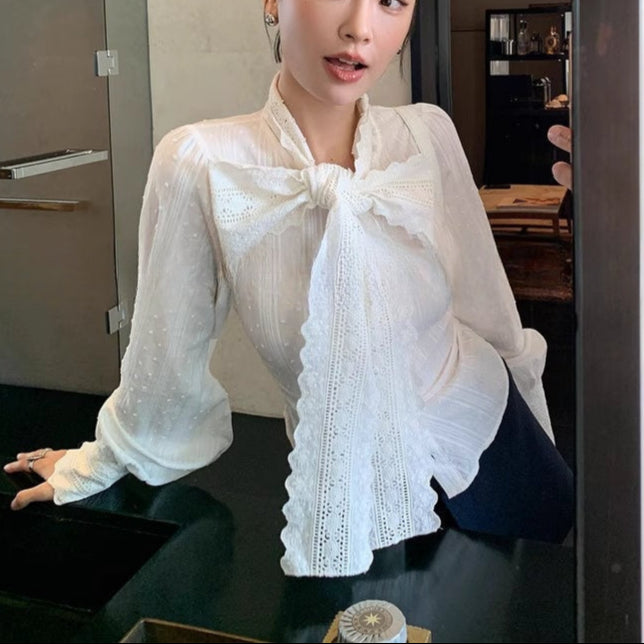 クラシカルな空気を纏う、繊細なレースと大きなリボンタイが印象的なブラウス♡