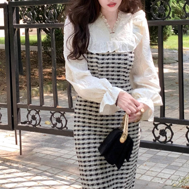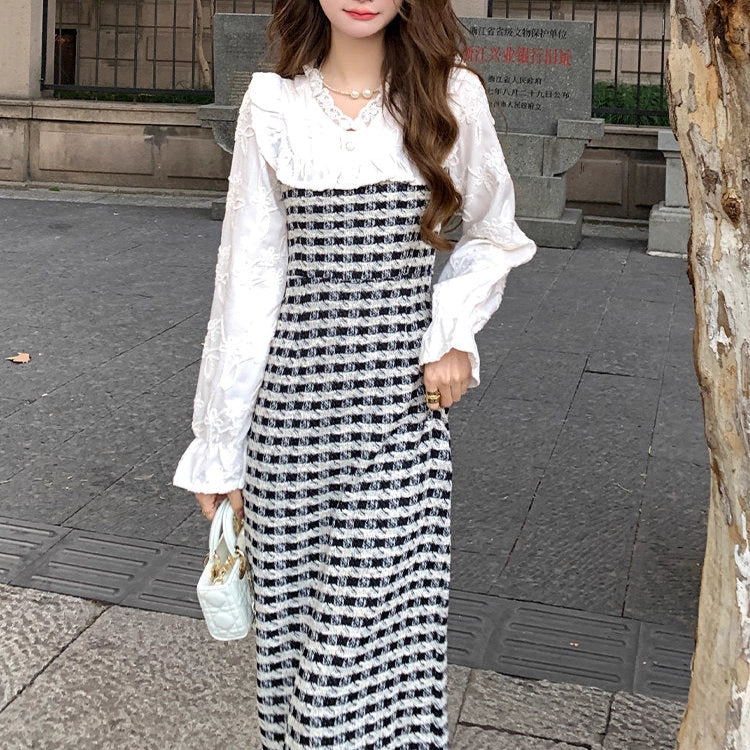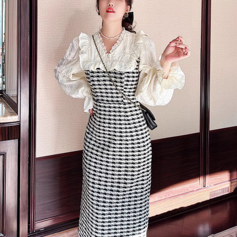 街角で恋を待つクラシカルチェックワンピース_R0347