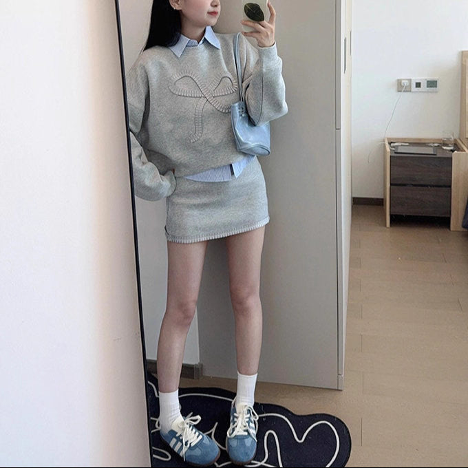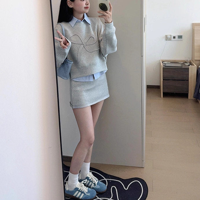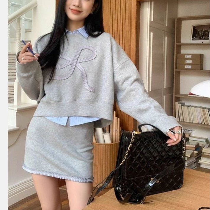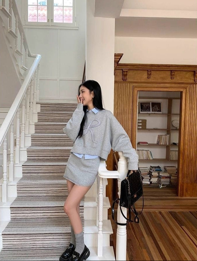 ゆったりとしたシルエットに大きなリボン刺繍が映える