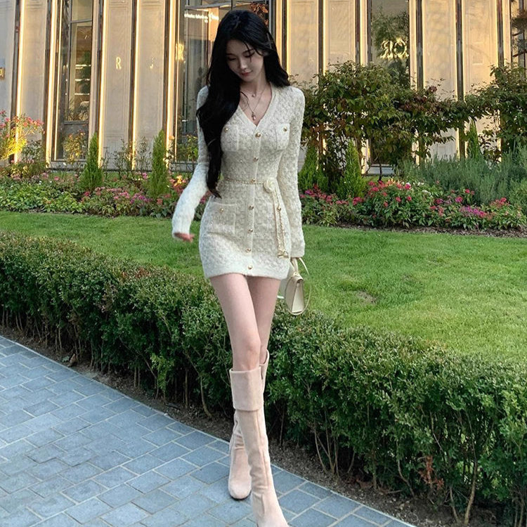 ウエストをマークする細ベルトがスタイルアップ効果◎