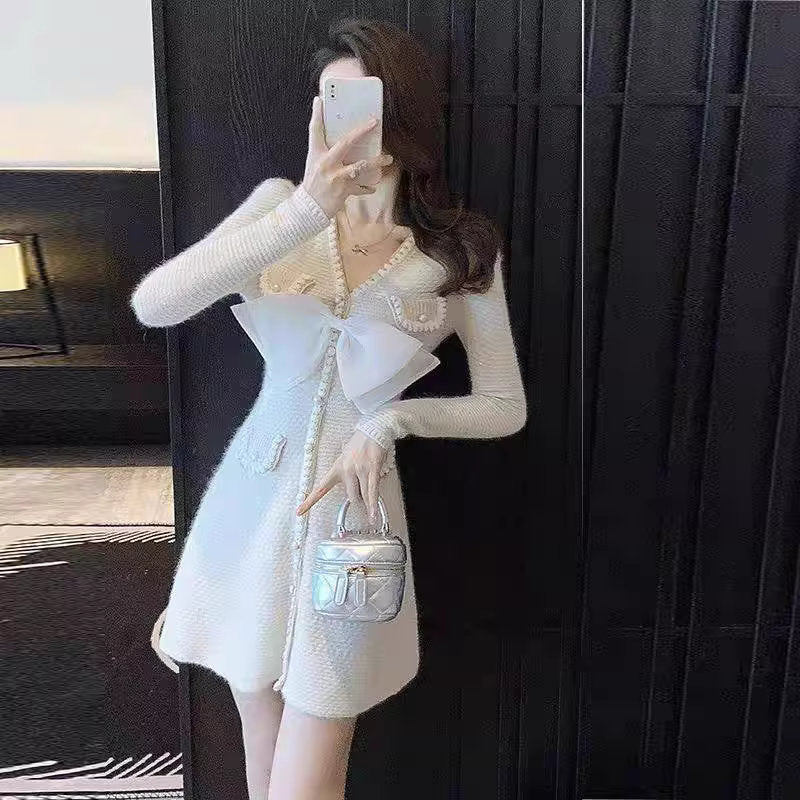 お城の舞踏会でお嬢様が纏うホワイトリボンツイードワンピース_R0354