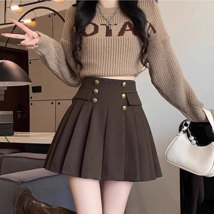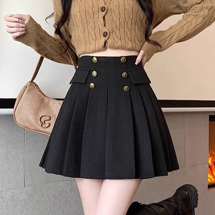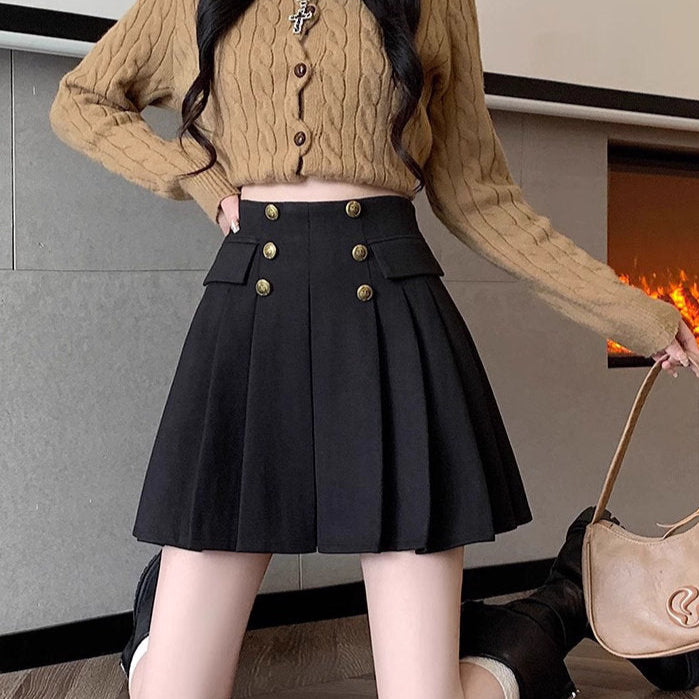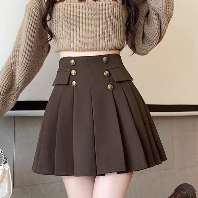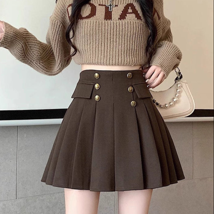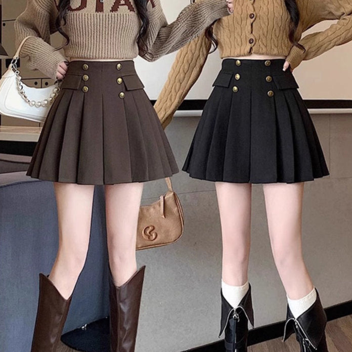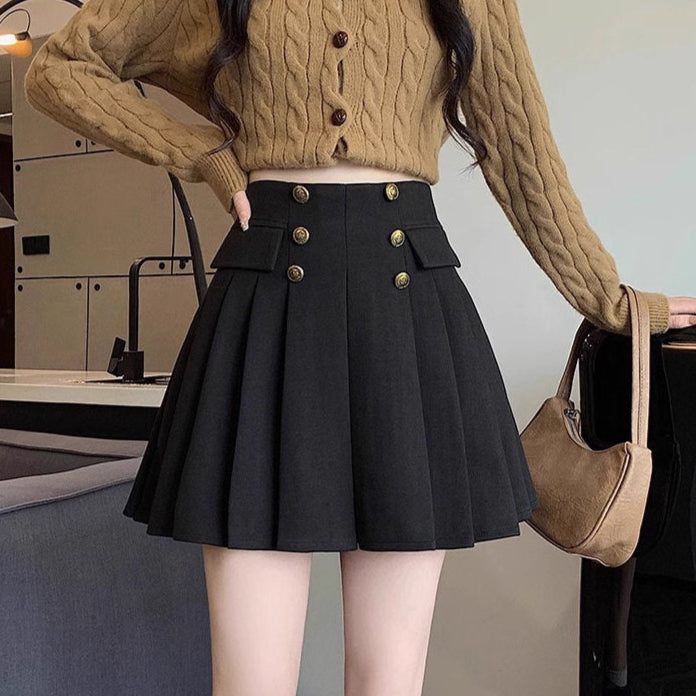 上品なプリーツデザインに、ゴールドボタンをあしらった