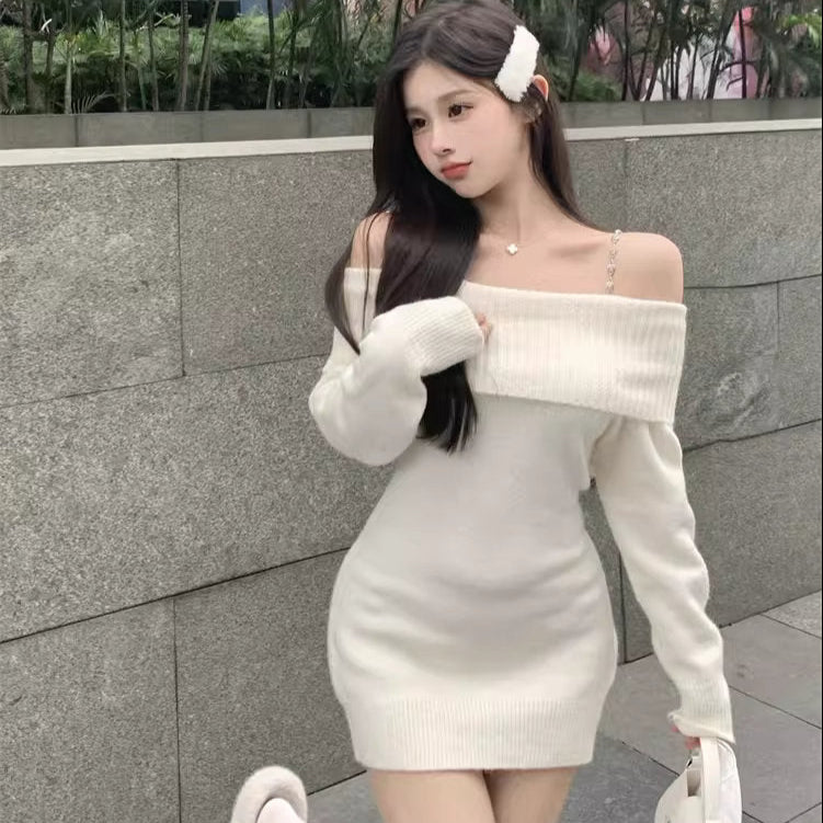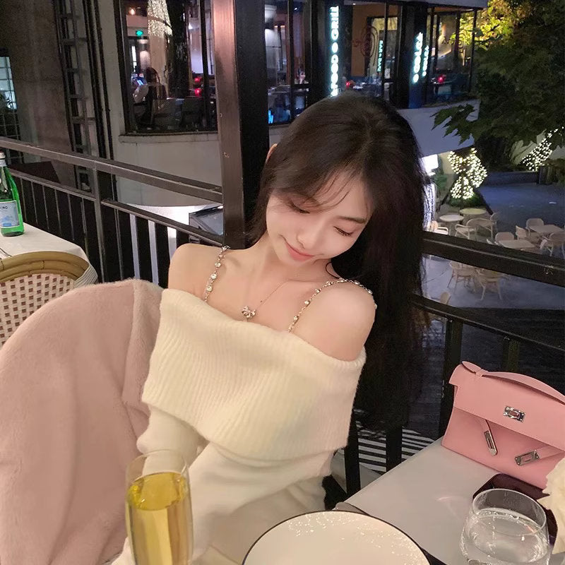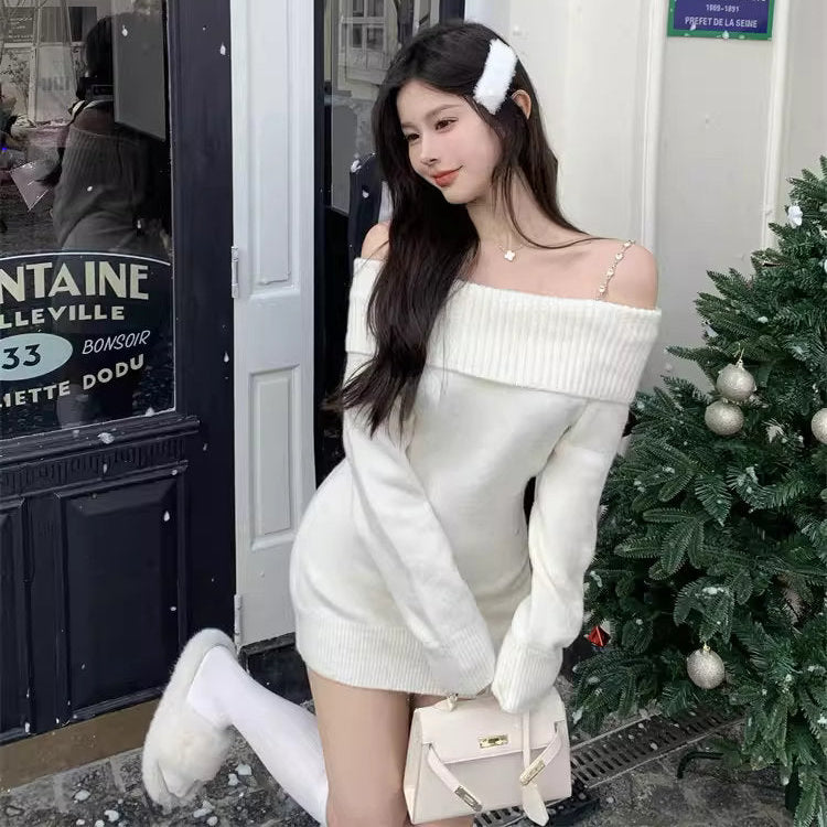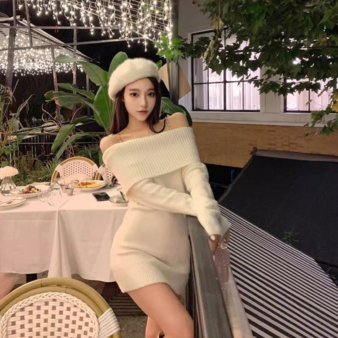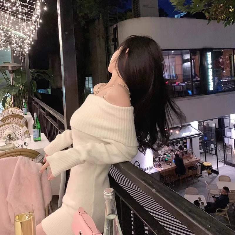 キャンドルが揺れる夜に選んだ、ビジューショルダーリブニットワンピース_R0373