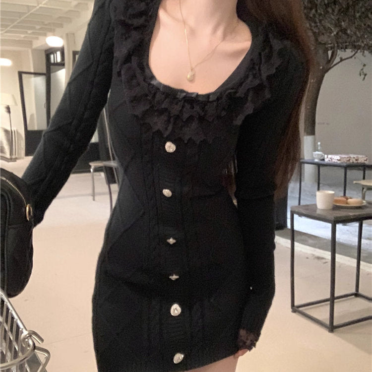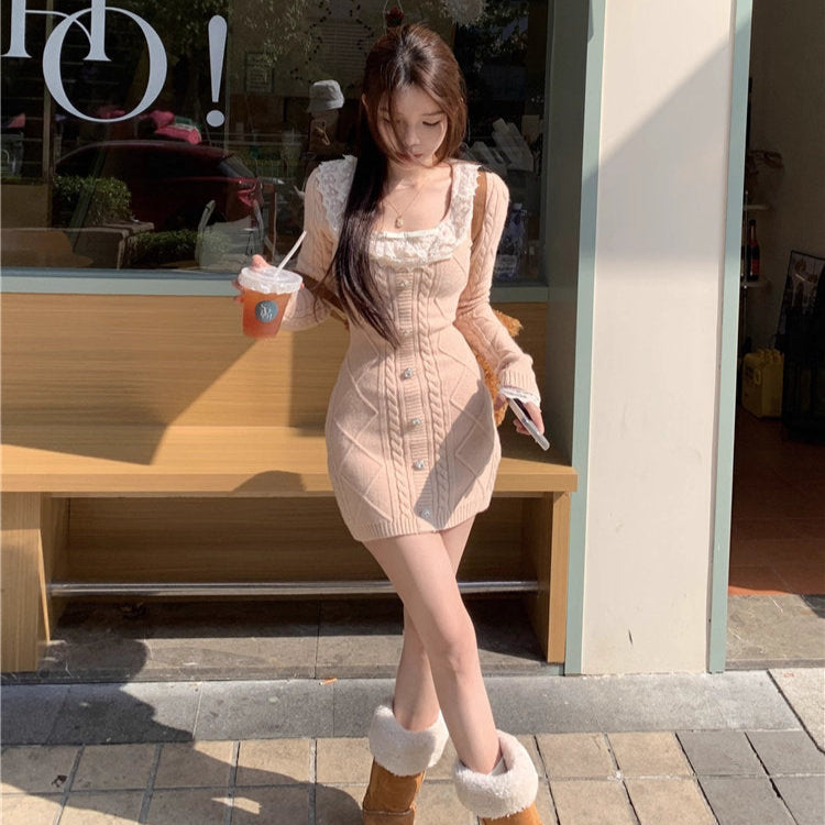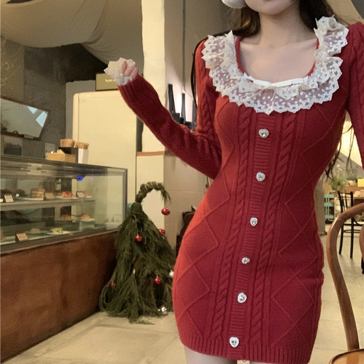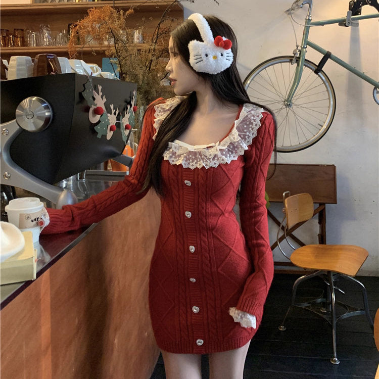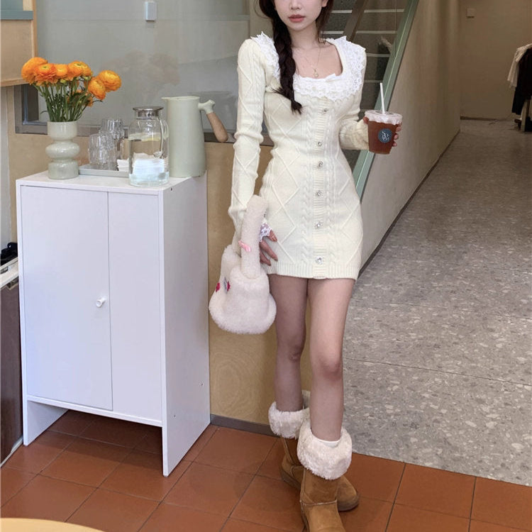 繊細なレースをあしらったガーリーなニットワンピース♡
