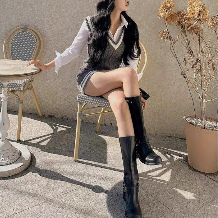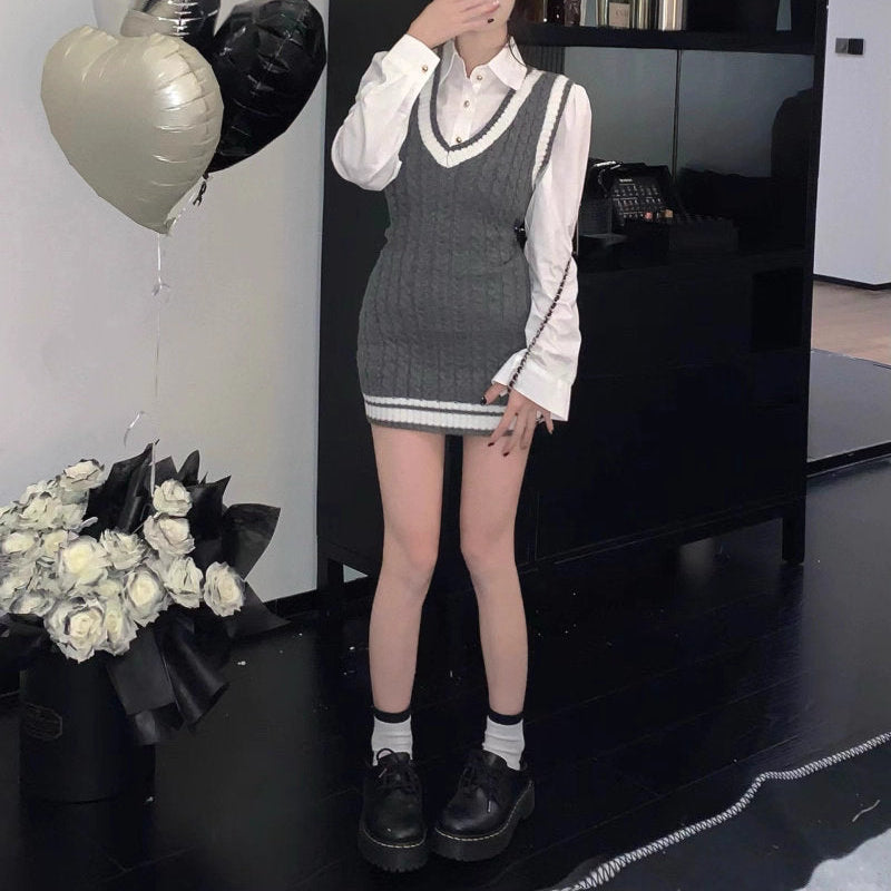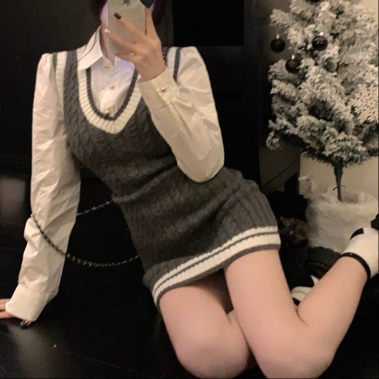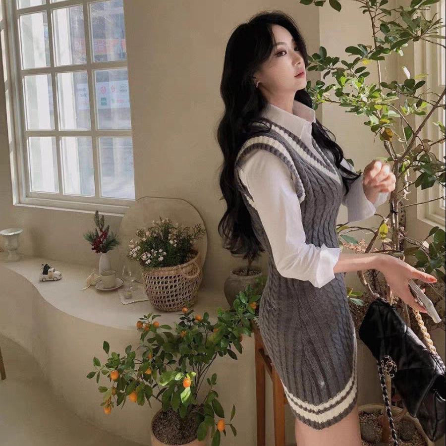 図書館の午後、恋に落ちた知的な彼女のニットワンピース_R0388
