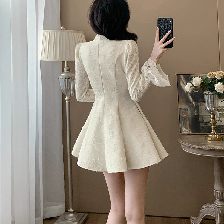 白い花びらが落ちる瞬間のフレンチレースフリルワンピース_R0400