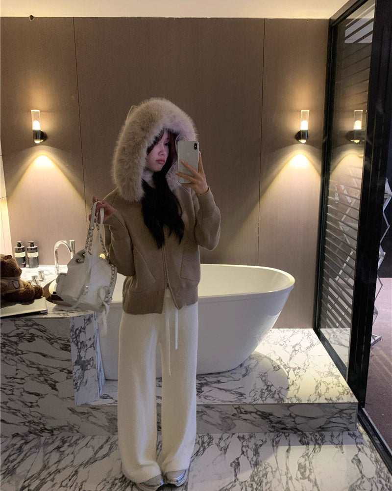 ふわふわのファーフード付きニットカーディガン♡