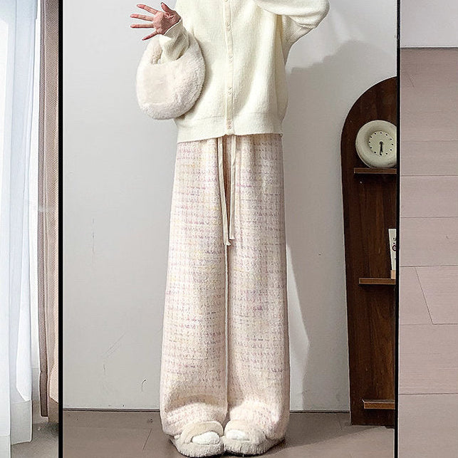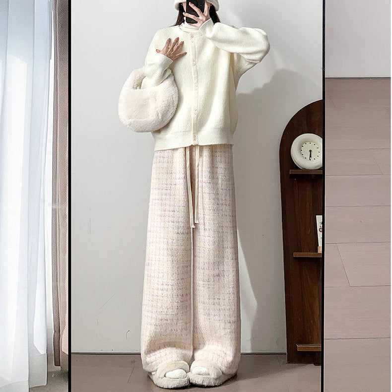 白い毛布に包まれるような休日の千鳥柄パンツ_R0425