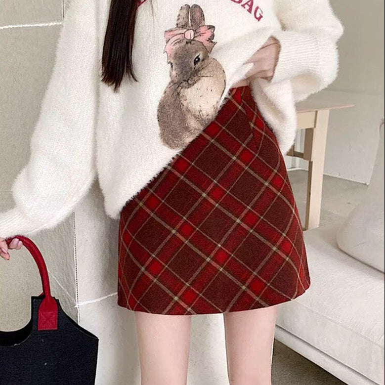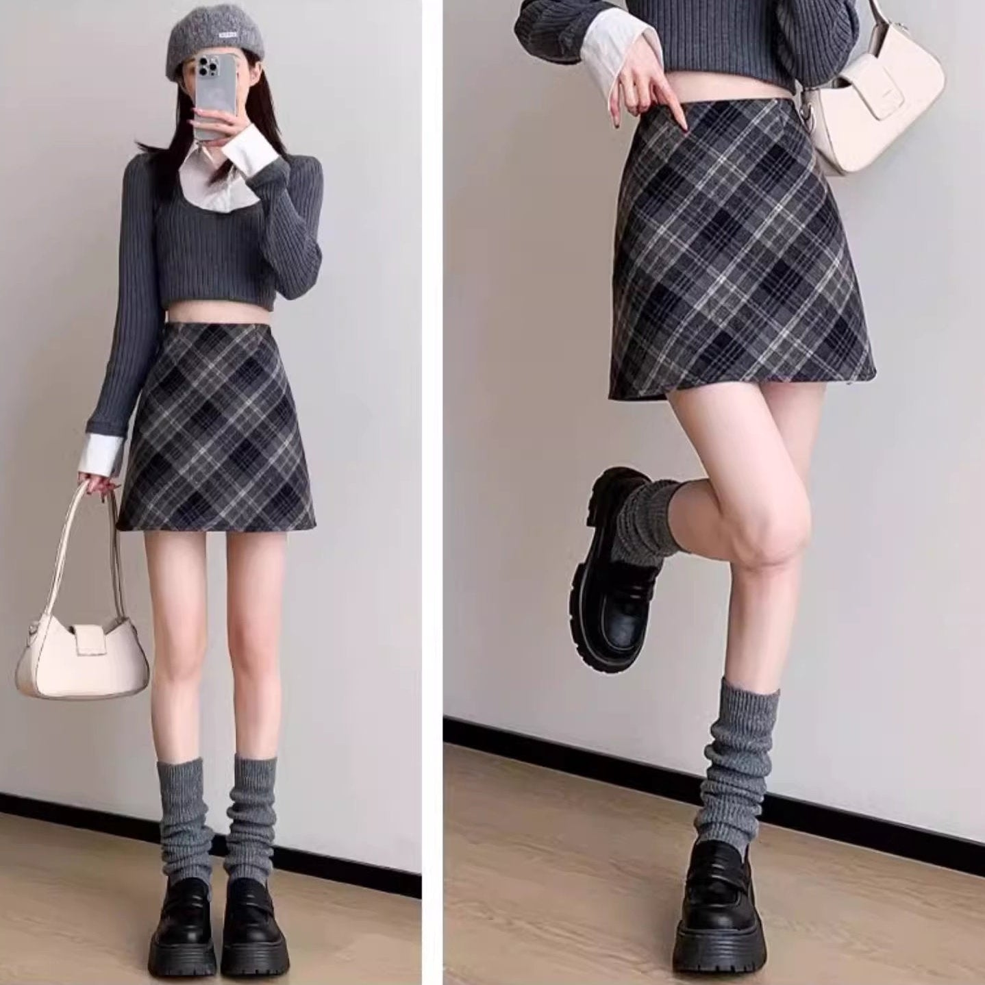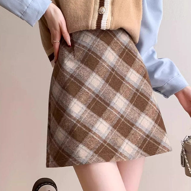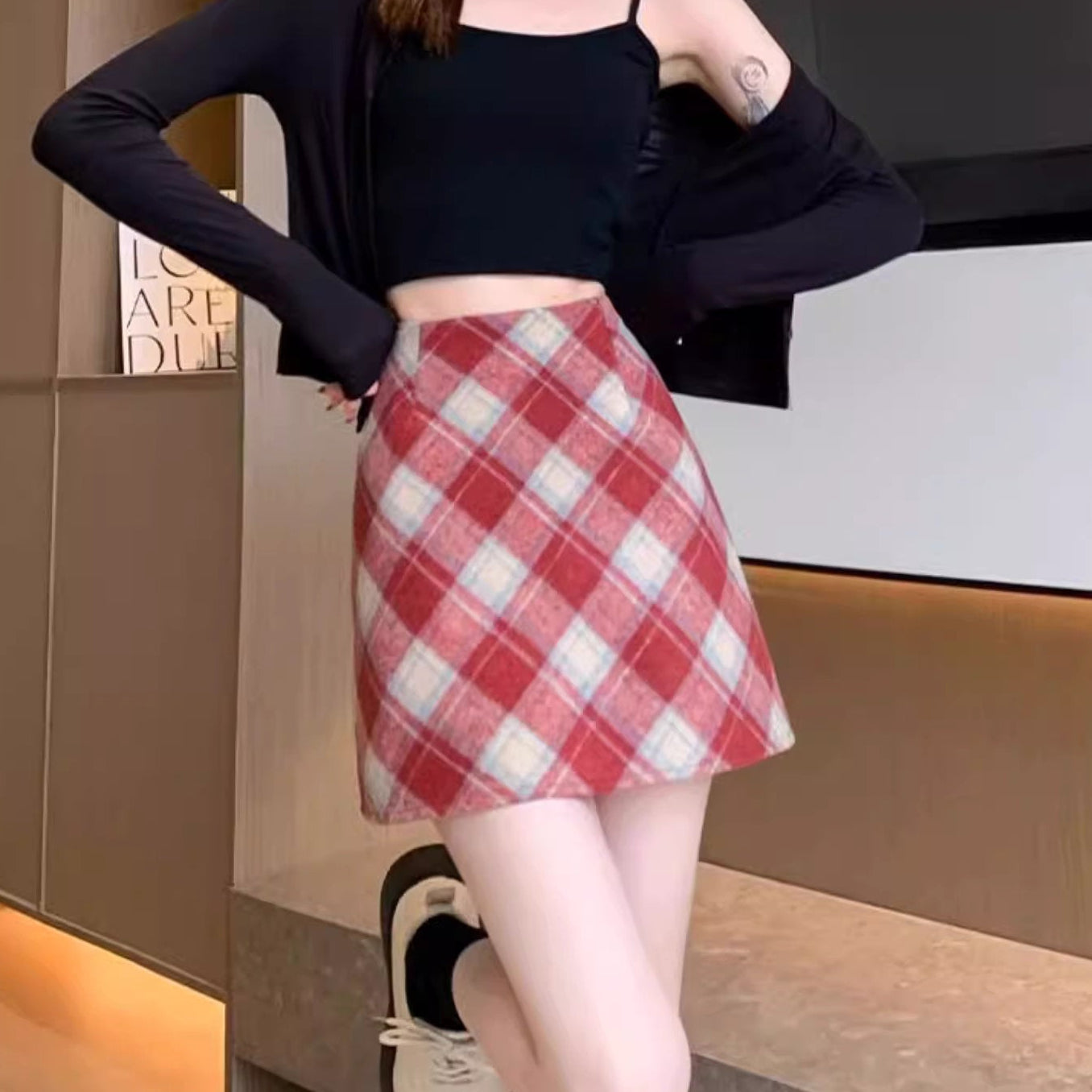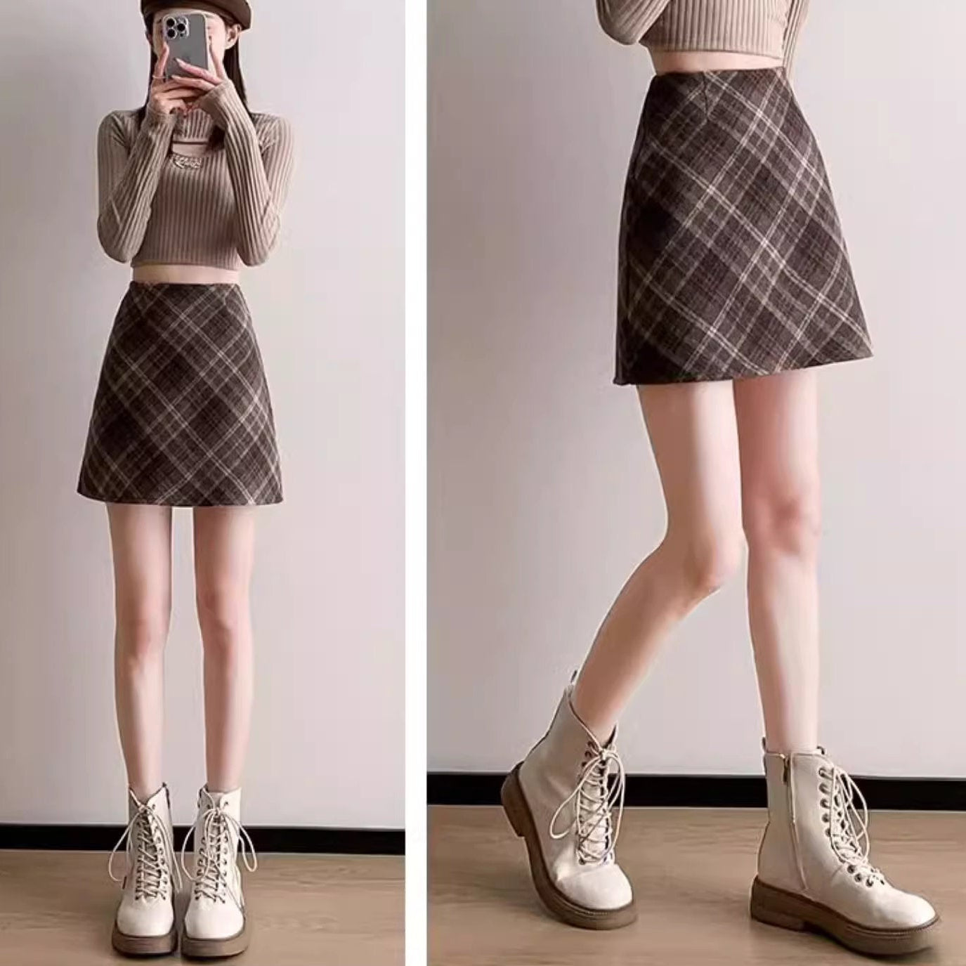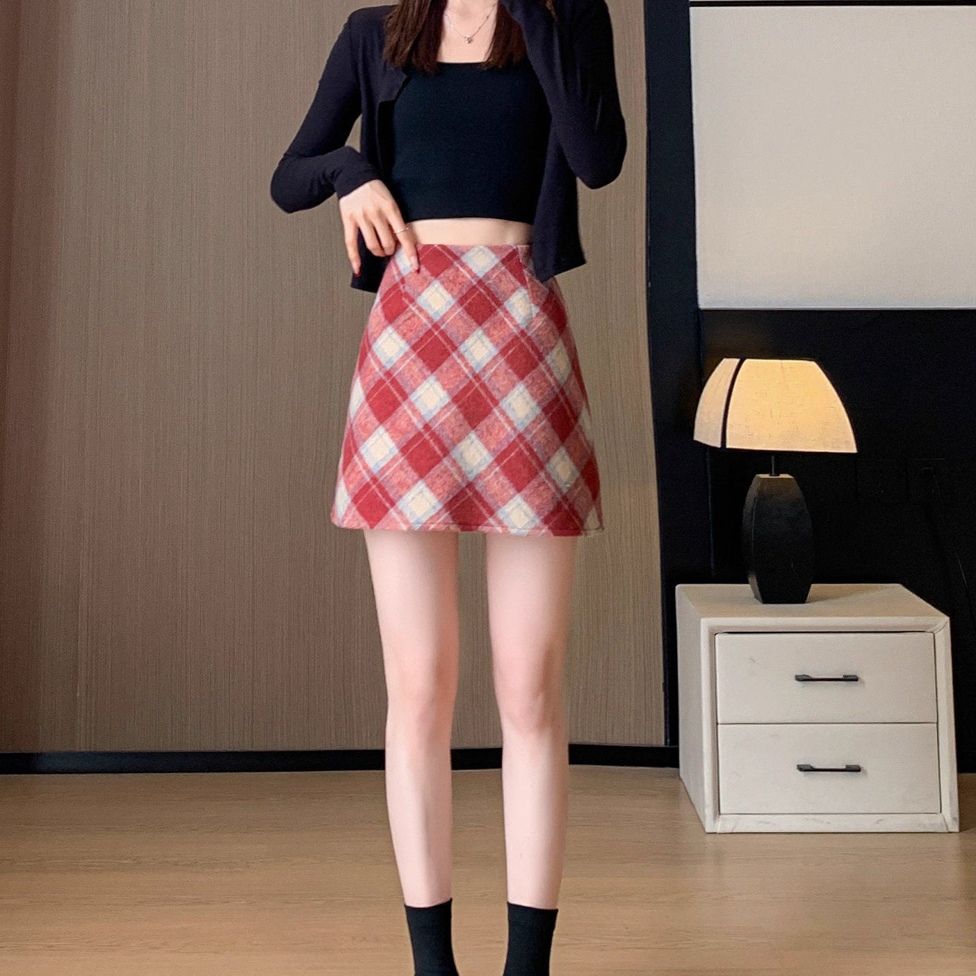 季節感たっぷりのチェックが映える、ウールライク素材のミニスカート